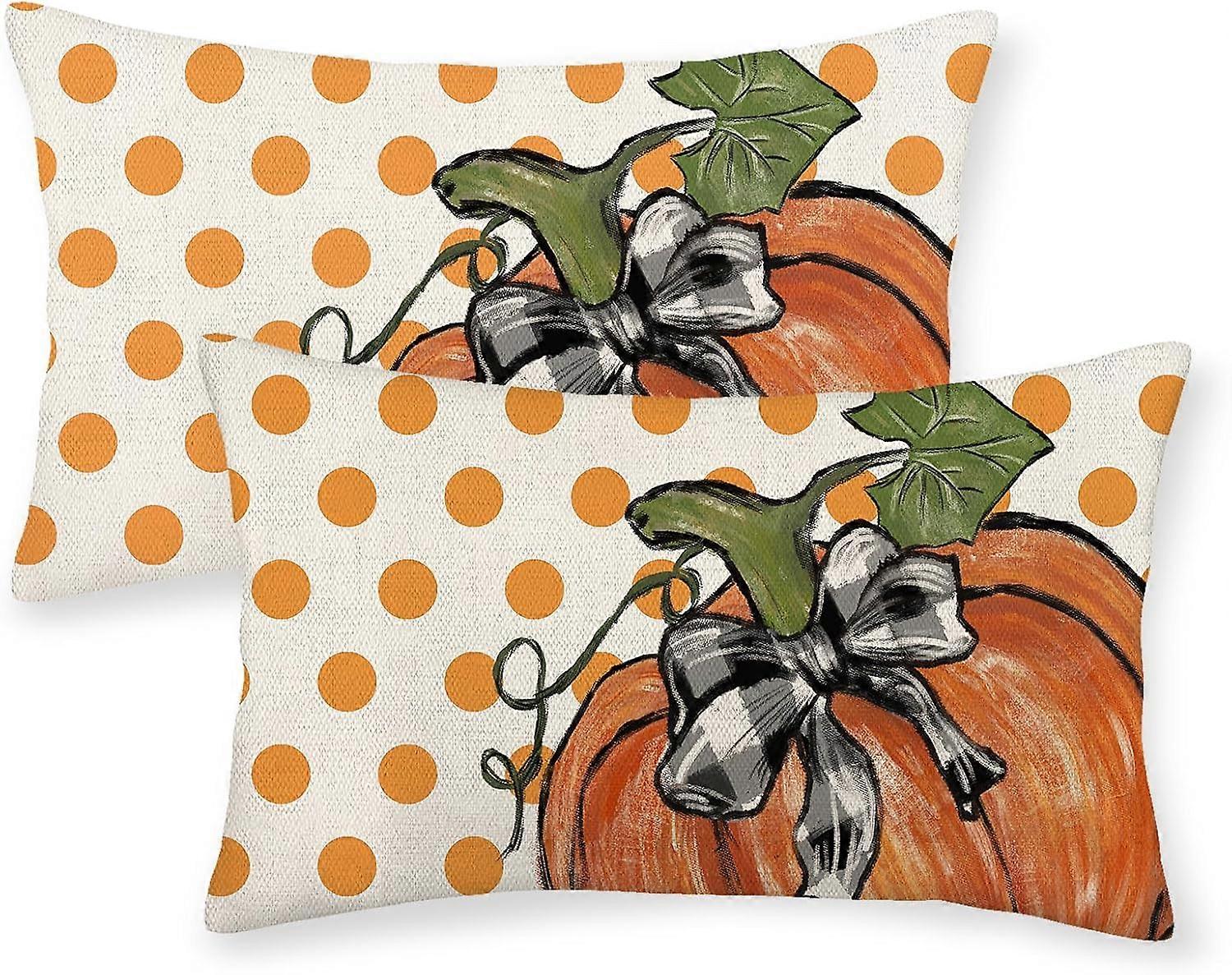 Fall Pillow Covers 12x20 Set of 2 Orange Pumpkin Leaf and Polka Dot Fall Decor Pillowcase Autumn Thanksgiving Decorative Outdoor Throw Pillow Covers L
