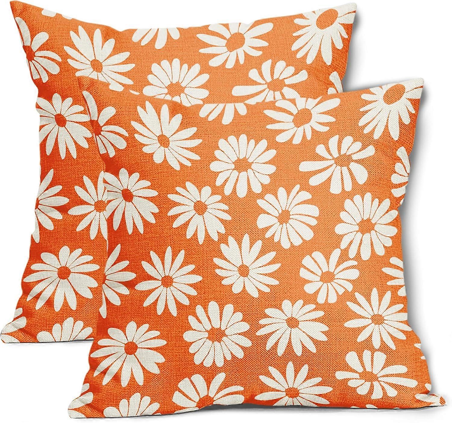Orange Pillow Covers 20X20 Inch White Floral Daisy Geometry Decorative Couch Pillow Cases Spring Summer Flower Throw Pillows Set of 2 Farmhouse Home D