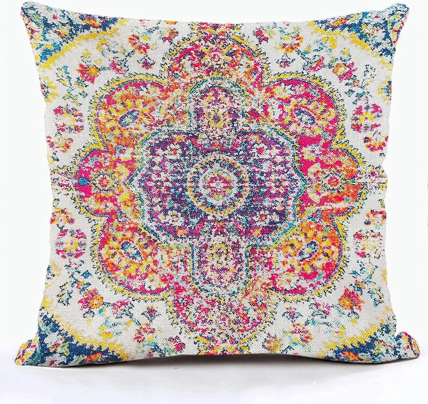 Boho Pillow Covers 20x20 Inch Geometric Tribal Carpet Pattern Throw Pillows Covers Yellow Blue Distressed Vintage Outdoor Decorative Cushion Covers Bo