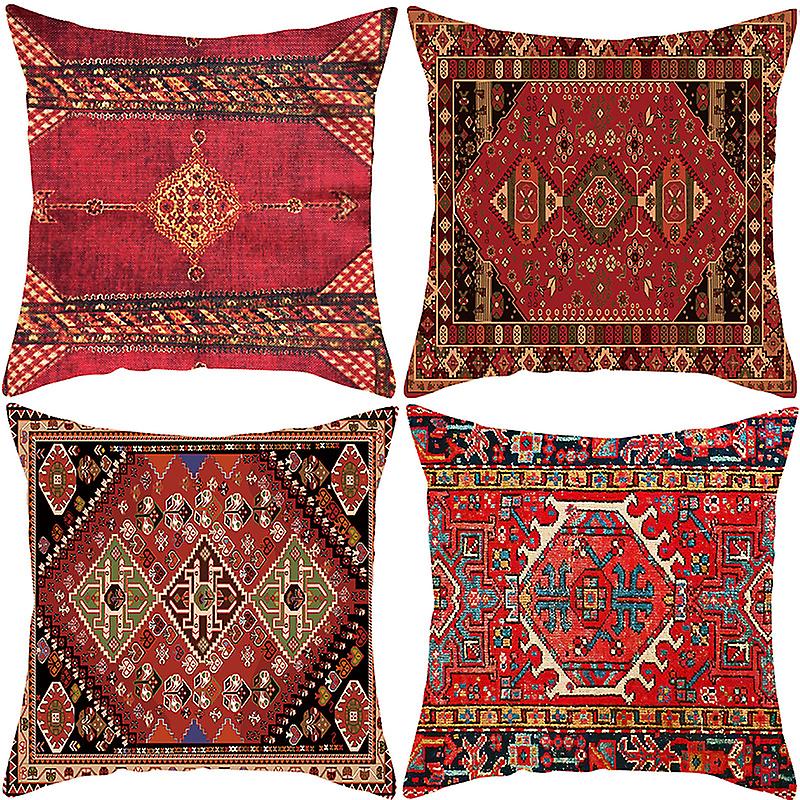 Red Pillow Covers 18x18 Set of 4 Boho Decorative Throw Pillows for Sofa Living Room Bed Outdoor Persian Rug Home Decor