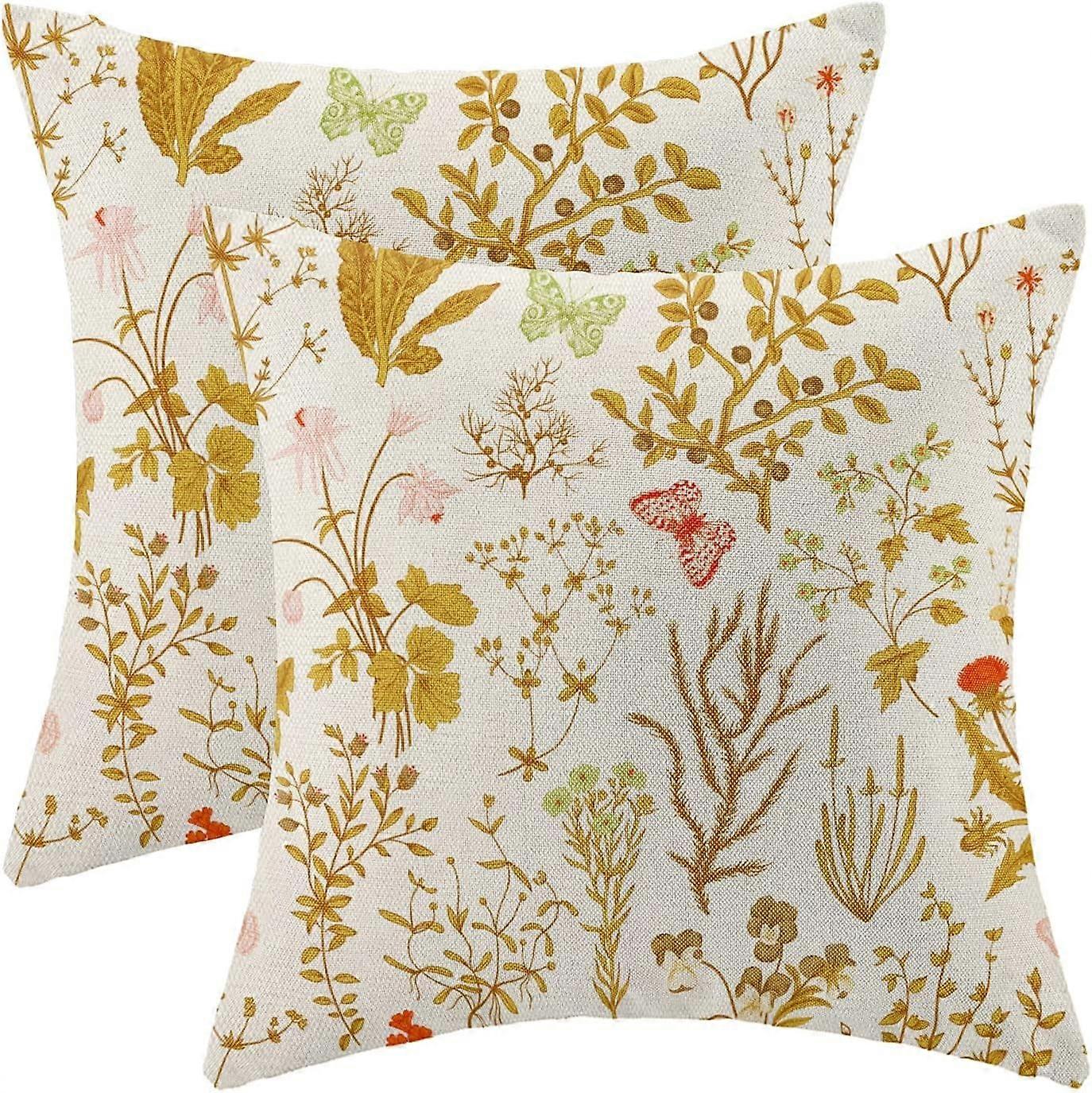 Summer Pillow Covers 20x20 Inch Set of 2,Yellow Wild Flower Plant Throw Pillows Case,Seasonal Floral Outdoor Decorative Square Linen Farmhouse Decor C