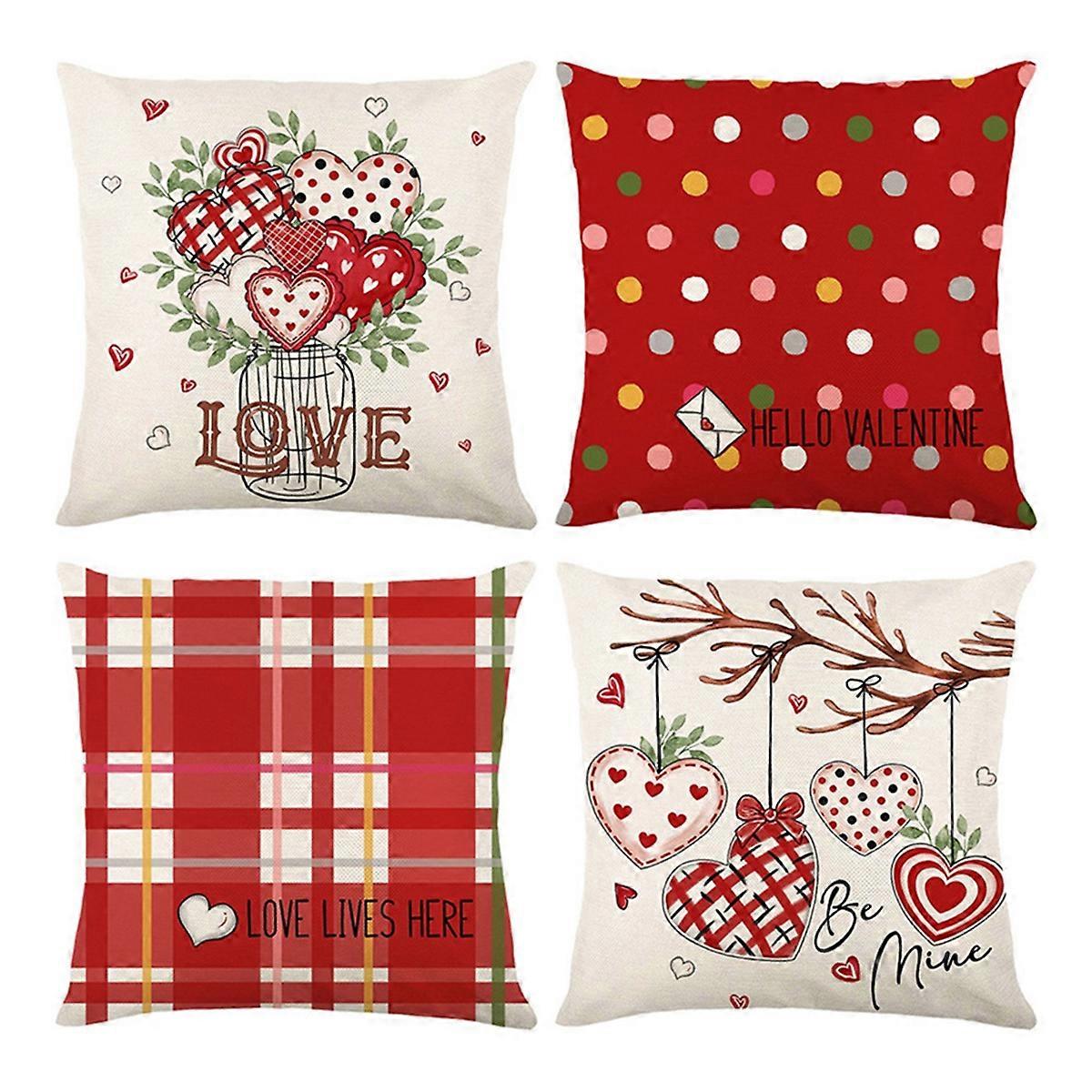 [Package Includes]: Set of 4 Valentine's Day Pillow Covers (filler not included). These pillow covers are designed to fit 18x18 inch inserts, with the pattern exclusively featured on the front and no printing on the back. [ Zipper Design]: Experience seamless style with our Valentine's Day pillow cases, featuring a hidden zipper closure for a refined touch. Effortlessly insert your and achieve a polished look for your love-filled decor. [Instant Loving Transformation]: up your romantic decorations in an instant with our pillow covers. Mix and match them with other love-filled decor to create a loving and stylish atmosphere in various spaces throughout your home that impress your sweetheart. [Premium Quality & Easy Care]: Crafted from linen, our pillow covers are built to withstand the test of time without any color bleeding, fading, or fraying. They are also machine washable for easy cleaning, making them a practical and long-lasting addition to your home. Colour:As Shown Material:linen Size:45x45cm Package Contents: 4 * pillowcase Only the above package content, other products are not included. Note: Light reflection and different displays may cause the color of the item in the picture a little different from the real thing. The measurement allowed error is +/- 1-3cm.