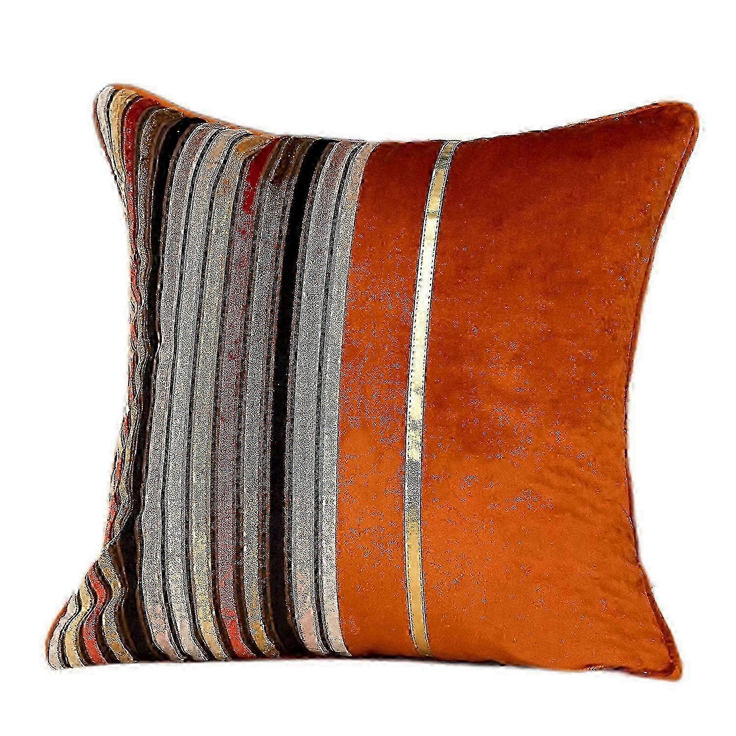 Striped Velvet Decorative Pillow Covers, Soft Burnt Orange with Gold Accents for a Cozy and Chic Living Room