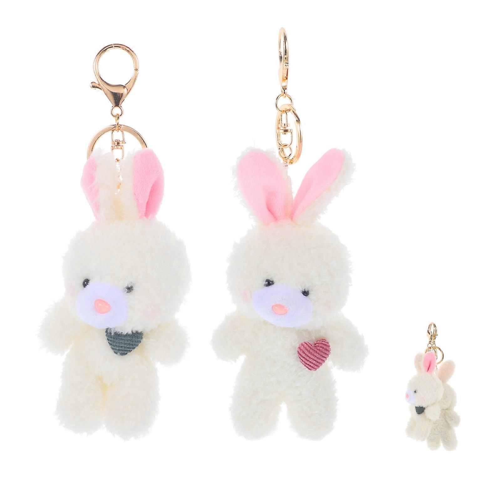 Plush Bunny Keychains with Gold Clips Soft Cartoon Rabbit Backpack Charms for Couples & Friends Cute Pink & Green Heart Pendant Bag Accessories