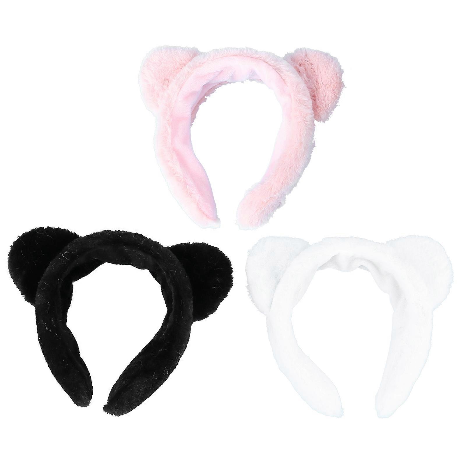 Plush Cat Ear Hair Headbands for Women – Soft Wide Face Hairbands for Makeup, Spa & Comfort – 3pcs Adorable Hair Accessories