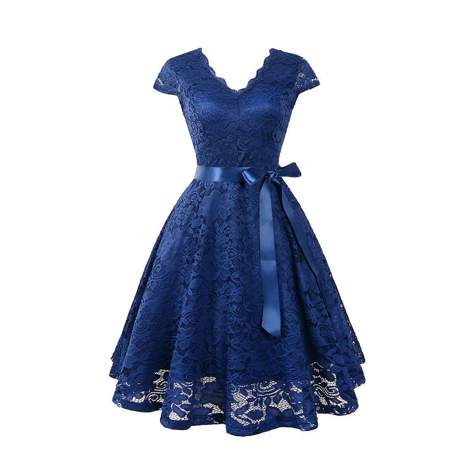 Best Seller-Womens Vintage Off Shoulder Lace Dress Floral Full Lace High and Low Long Sleeve Party Cocktail A-Line Swing Dresses