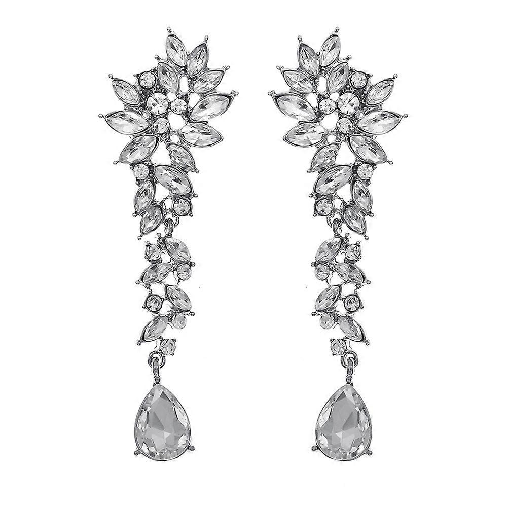 Elegant Shiny Rhinestone Earrings for Women Banquet Party Silver Dangle Style Ear Decorations 1 Pair