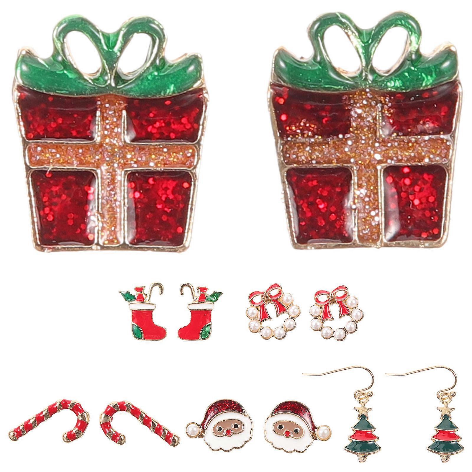 Earrings For Girls 6 Pairs Christmas Earrings Women Ear Decoration Square 1.8x1cm Festival Accessory