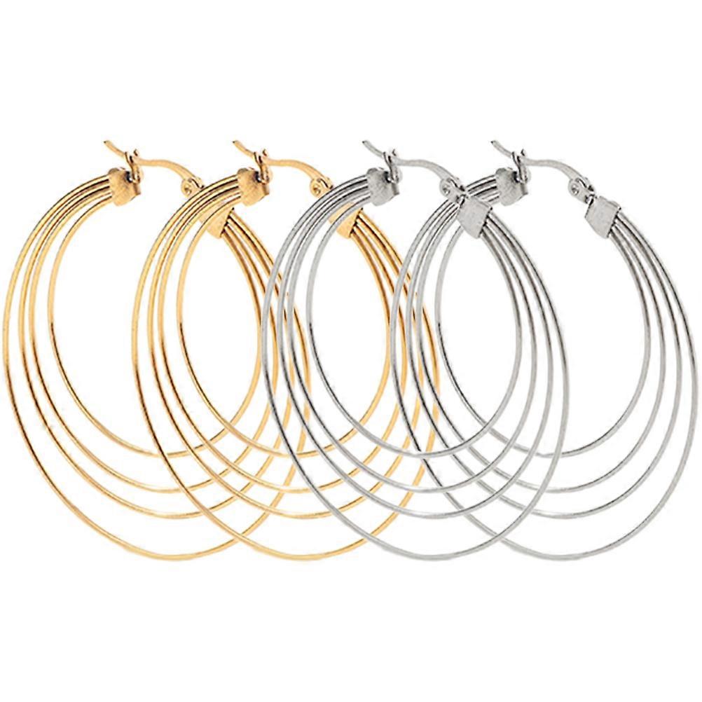 Metal Earrings Layered Earrings Women Girls Daily Wearing Circular Alloy 2Pcs