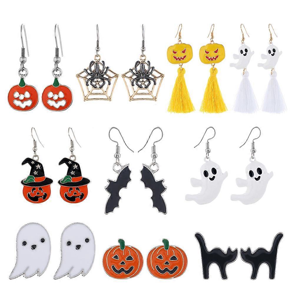Creative Halloween Themed Earrings 10 Pairs Dangle Suitable For Girls Women Costume Decoration Selfie Props