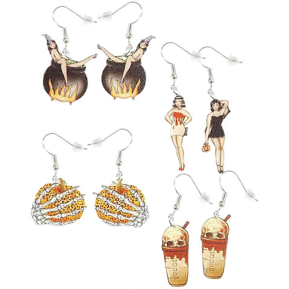 Funky Halloween Earrings For Women Drop Style 4 Pairs Jewelry Suitable For Photo Shooting Events