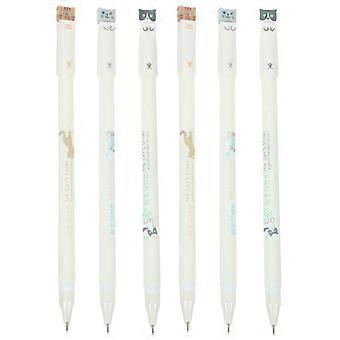 Cat Themed Pens Kawaii for Home Use Writing Black Ink 6Pcs