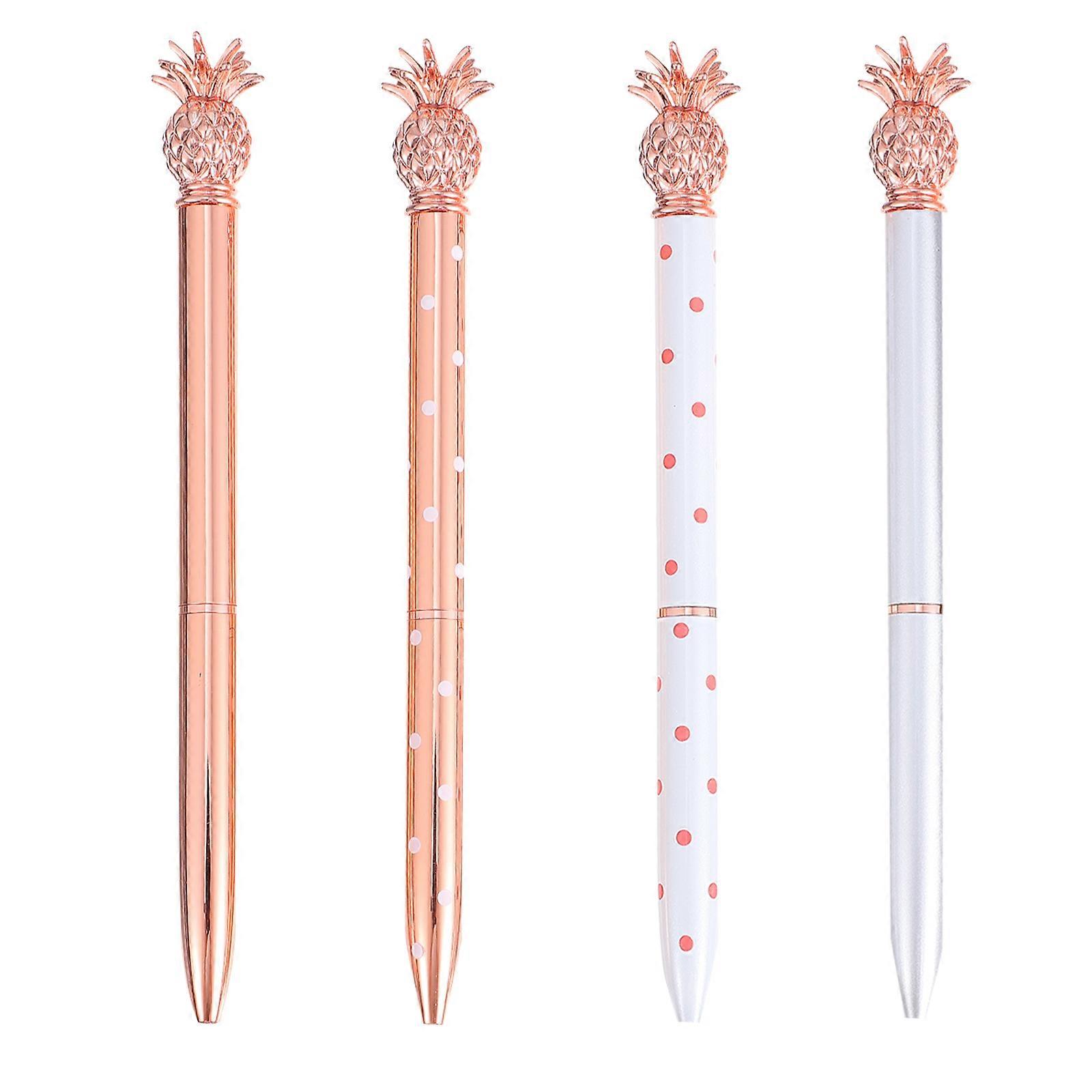 Cute Pineapple Ballpoint Pens 4pcs Set Smooth Writing Ink Lightweight Office School Stationery Gift