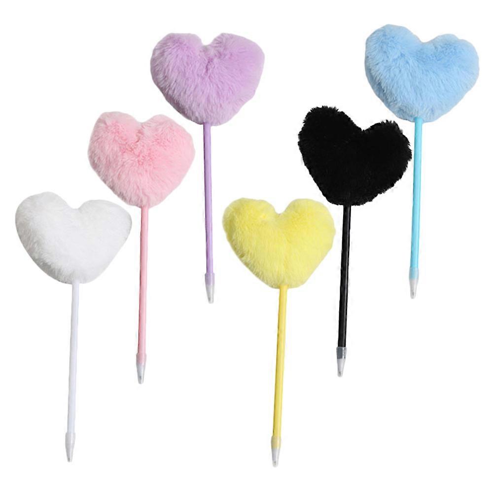 Cute Ballpoint Pens Fluffy Ball Heart Shape Pompom Plush Writing School Supplies 6Pcs