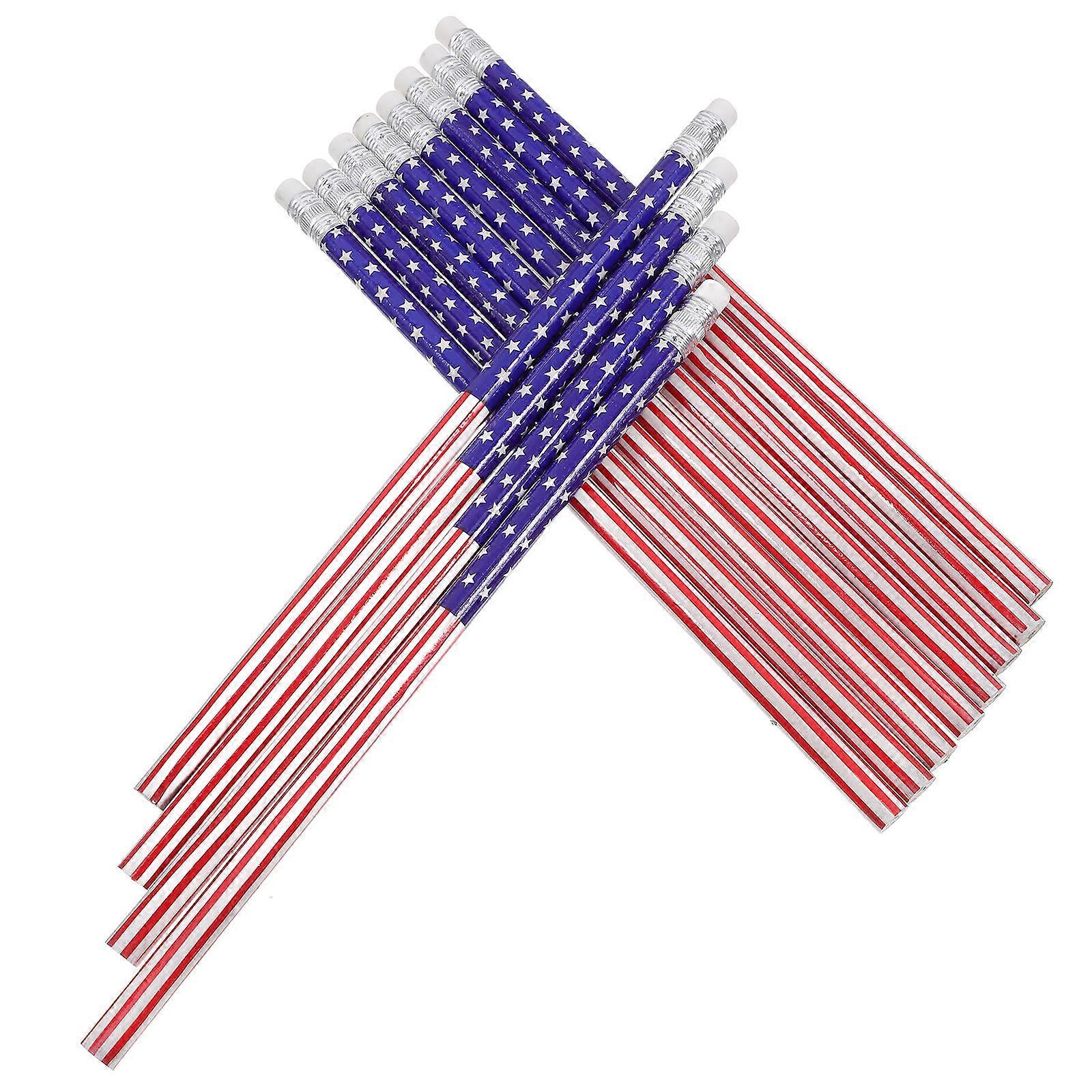 60ct American Flag Wooden Pencils, Smooth Writing, Ergonomic Design, Multi Use Decorative Pencils for School, Office