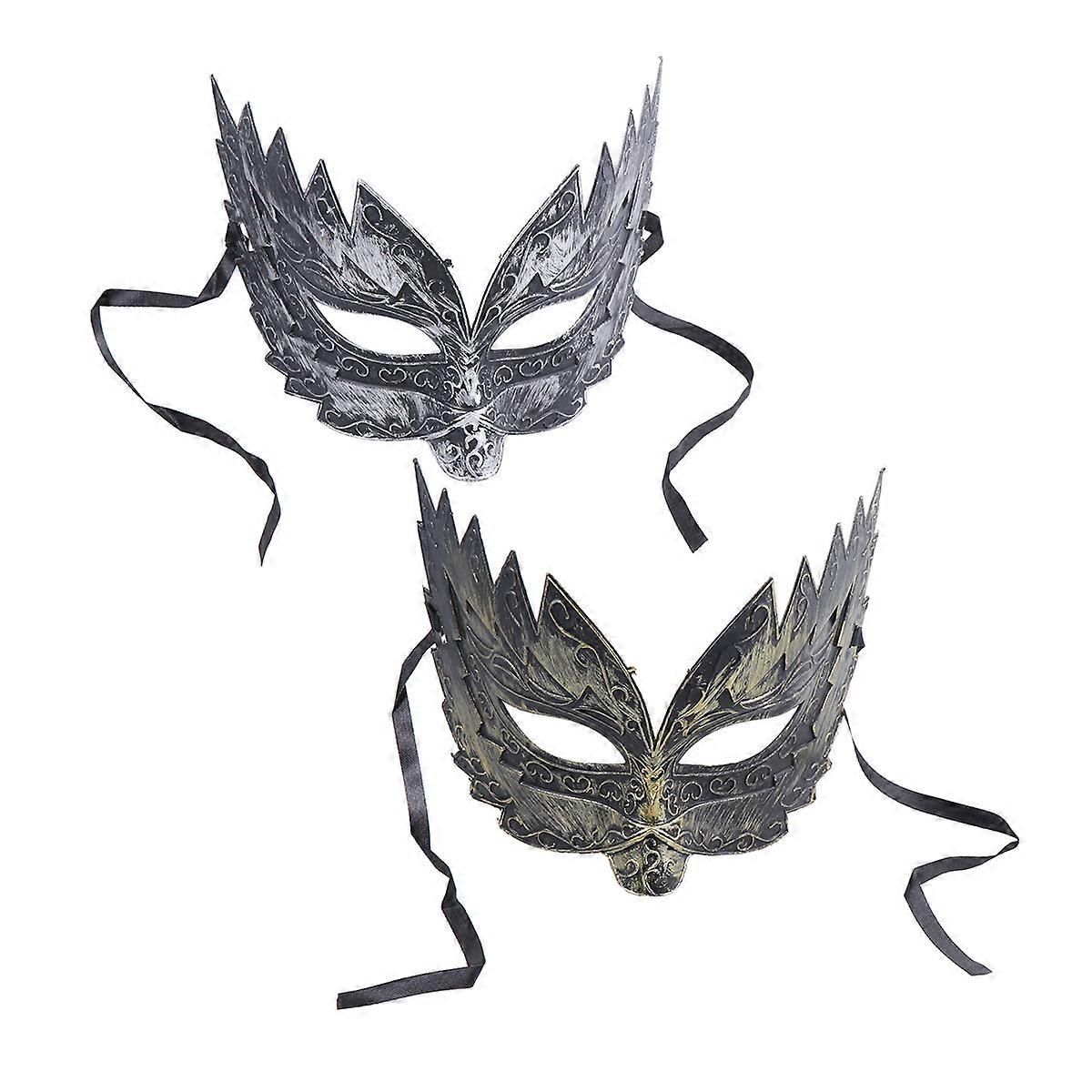 Masquerade Masks Devil Half Face Mask Golden Silver Elegant Costume Accessory 19x13.5cm 2Pcs