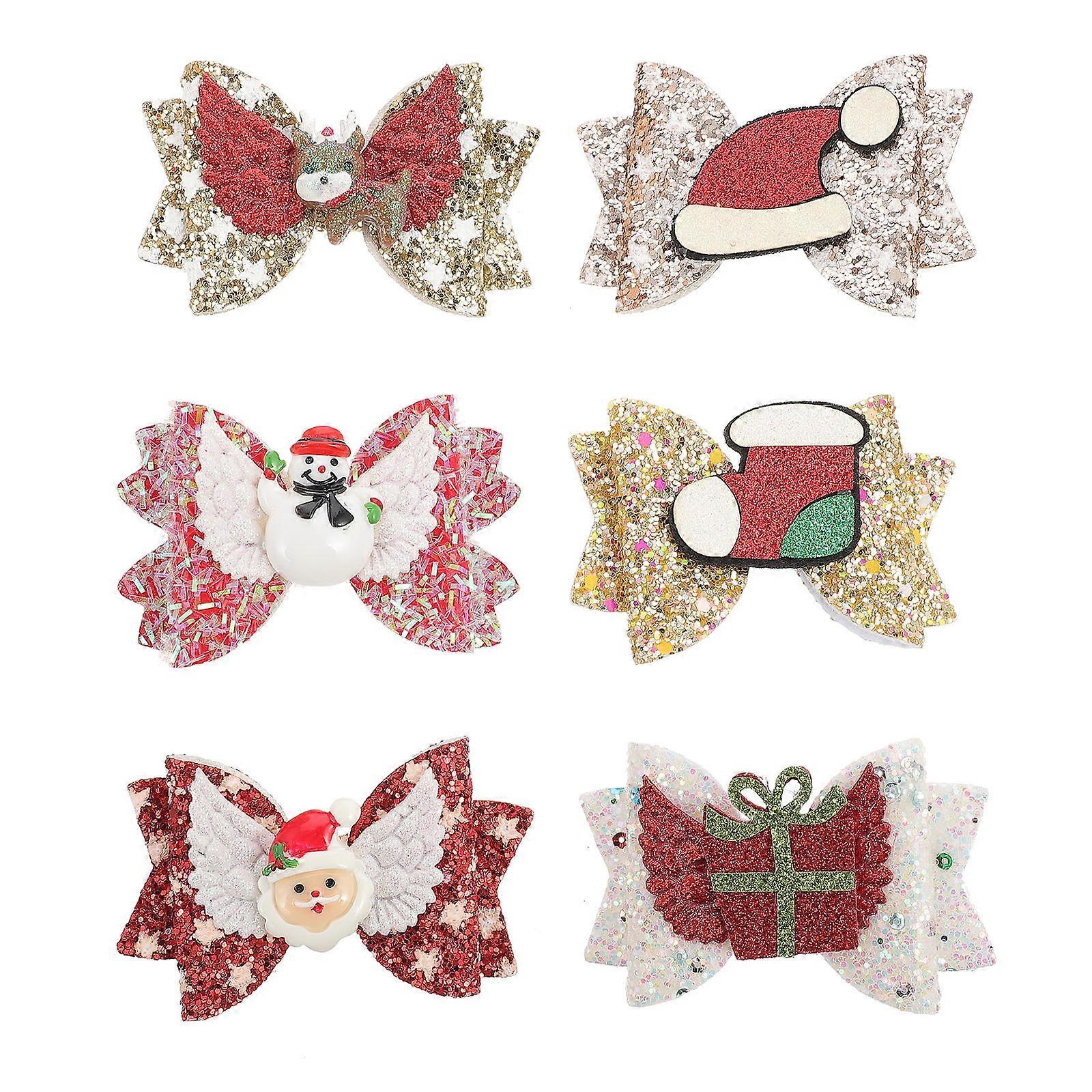 Bows Barrettes Hair Holder Mini Bow Clips For Kids Christmas present 6Pcs