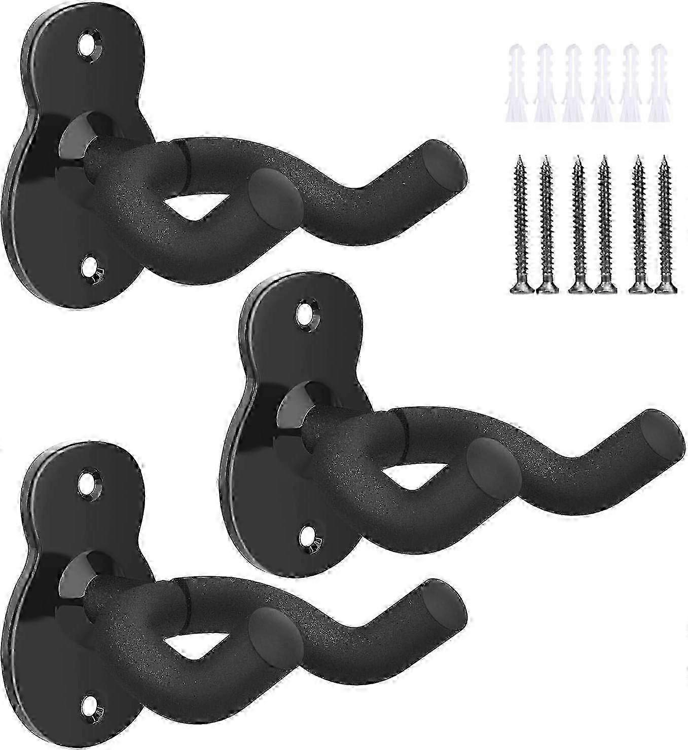 Metal Guitar Wall Brackets - 3-Pack Wall Mount Hooks for Various Instruments in Black - Durable Storage Solution for Guitars & More