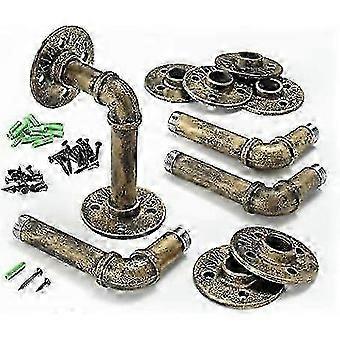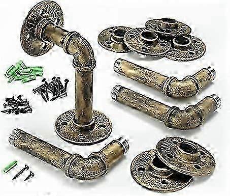 Industrial Iron Pipe Shelving Brackets, Pipe Shelf Brackets, Pipe Shelves - Elbow (4-Pack, Gold Bronze)