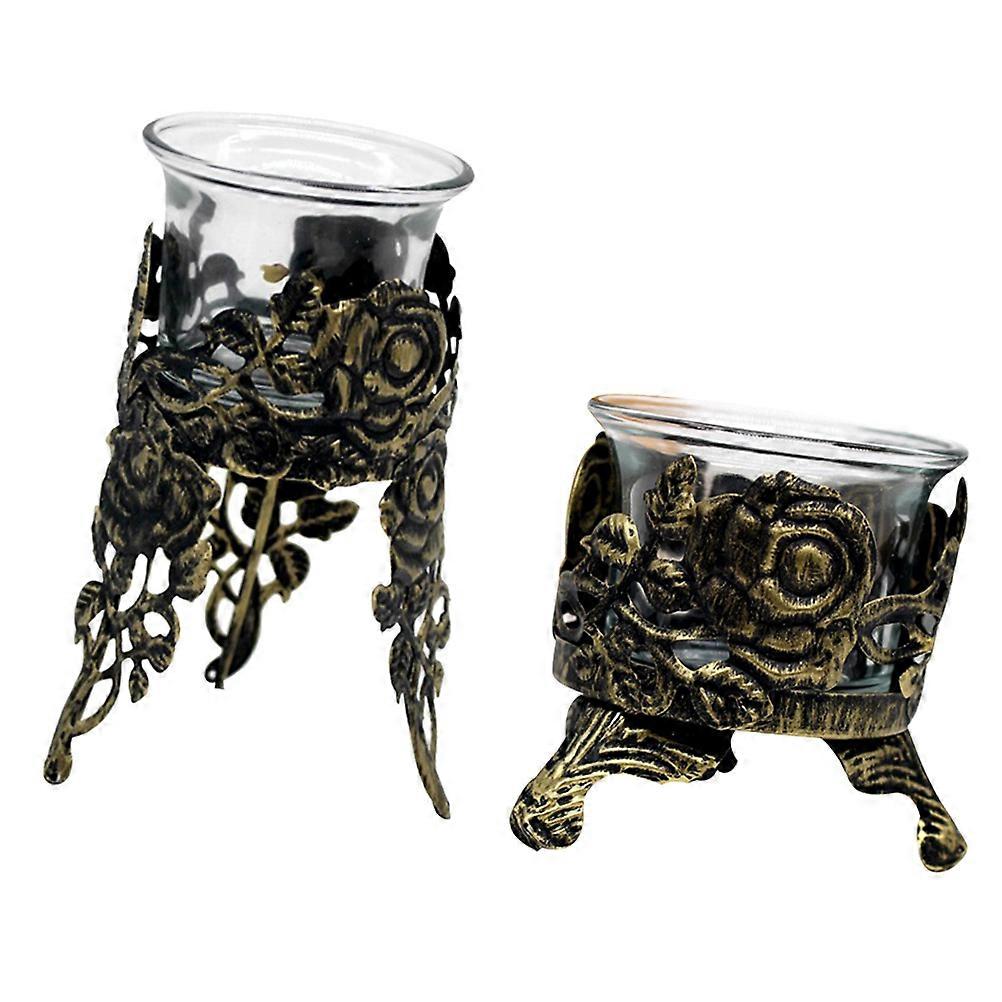 This candlestick holder is made of metal which is and strong. Its can make your house outstanding and charming. And the well made frame is sturdy and more . Feature - ColorDark Brown - Material: Iron and glass. - Size: Approx. 12.5 x 6 x 8cm. - Size: Approx. 8 x 7 x 6cm. - Made of , for and long-lasting use. - Rose shape design, beautiful and delicate, can make your house outstanding and charming. - You can put the candle or aromatherapy candle in it. - Ornaments for parlor, study, living room, weddings, candlelight dinner or giving as gifts. - Reusable, can store them for use each year. Package list: 2 x Hollow Candle Holder