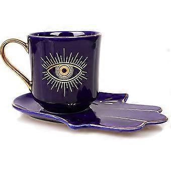 Tea Coffee Cups-6.8oz Bone China Porcelain Beautiful Tea Cup With Matching Saucers-eye (blue)
