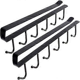 Metal Hook Rack Cups (set Of 2), Under Shelf Hanging Cups, Cupboard Insert Cup Holder -black
