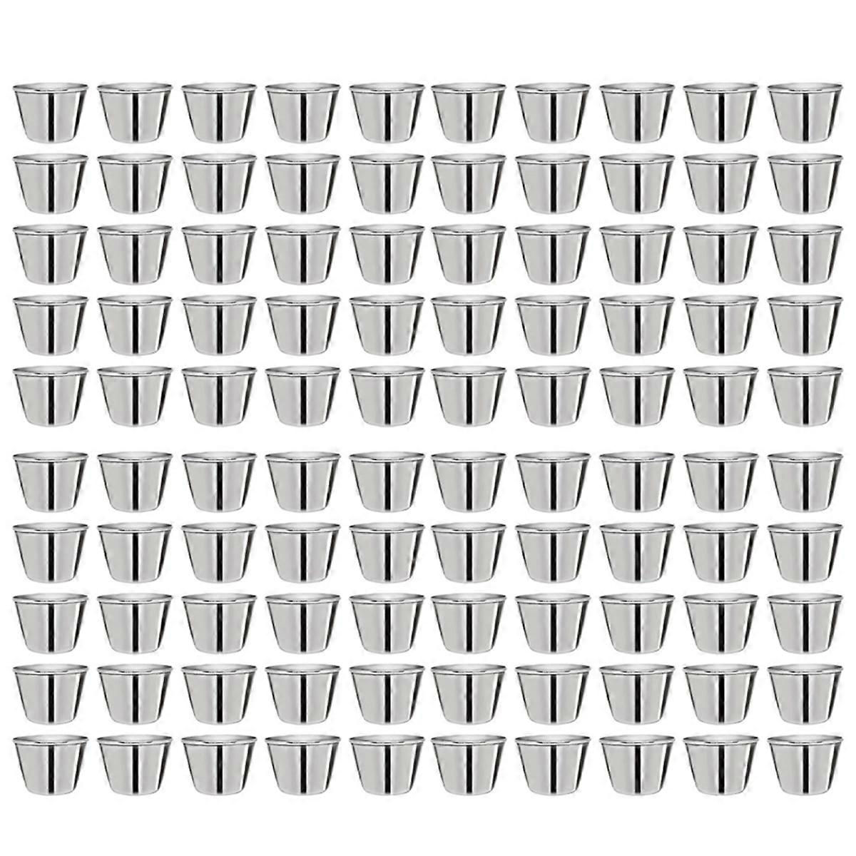 Exceptional 100 Pack 2.5oz Metal Sauce Cups: These are commercial grade cups for multiple uses. Designed carefully with dimensions of 2.4Inch top diameter, 1.4Inch bottom diameter and 1.7Inch height to splash-free dipping. These compact yet spacious cups are for handling festivals, dinners and parties with utmost ease. Robust and Long-lasting Restaurant Sauce Cups: Crafted with high quality stainless materials which ensures reusability, durability and long lifespan. They have a rounded rim at the top for safety and ease of cleaning, offering both functionality and aesthetics. Multifunctional Metal Condiment Cups: Apt for your usual restaurant, diner and bar cafes and also for family dinners, birthday parties and holiday celebrations. Can be used for camping by pairing it with a matching fry cup. The cups can sides of salsa, fresh jalapenos, olives or syrup in addition to your traditional signature sauces. Stress-free Cleaning and Storage: These small condiment bowls can be cleaned easily thanks to the smooth stainless steel and dishwasher-safe properties. A classic look that is easy to maintain. Their stackable design proves to be a space saver when it comes to storage. Colour:Silver Material:Stainless steel Package Contents: 100 * small bow Only the above package content, other products are not included. Note: Light reflection and different displays may cause the color of the item in the picture a little different from the real thing. The measurement allowed error is +/- 1-3cm.