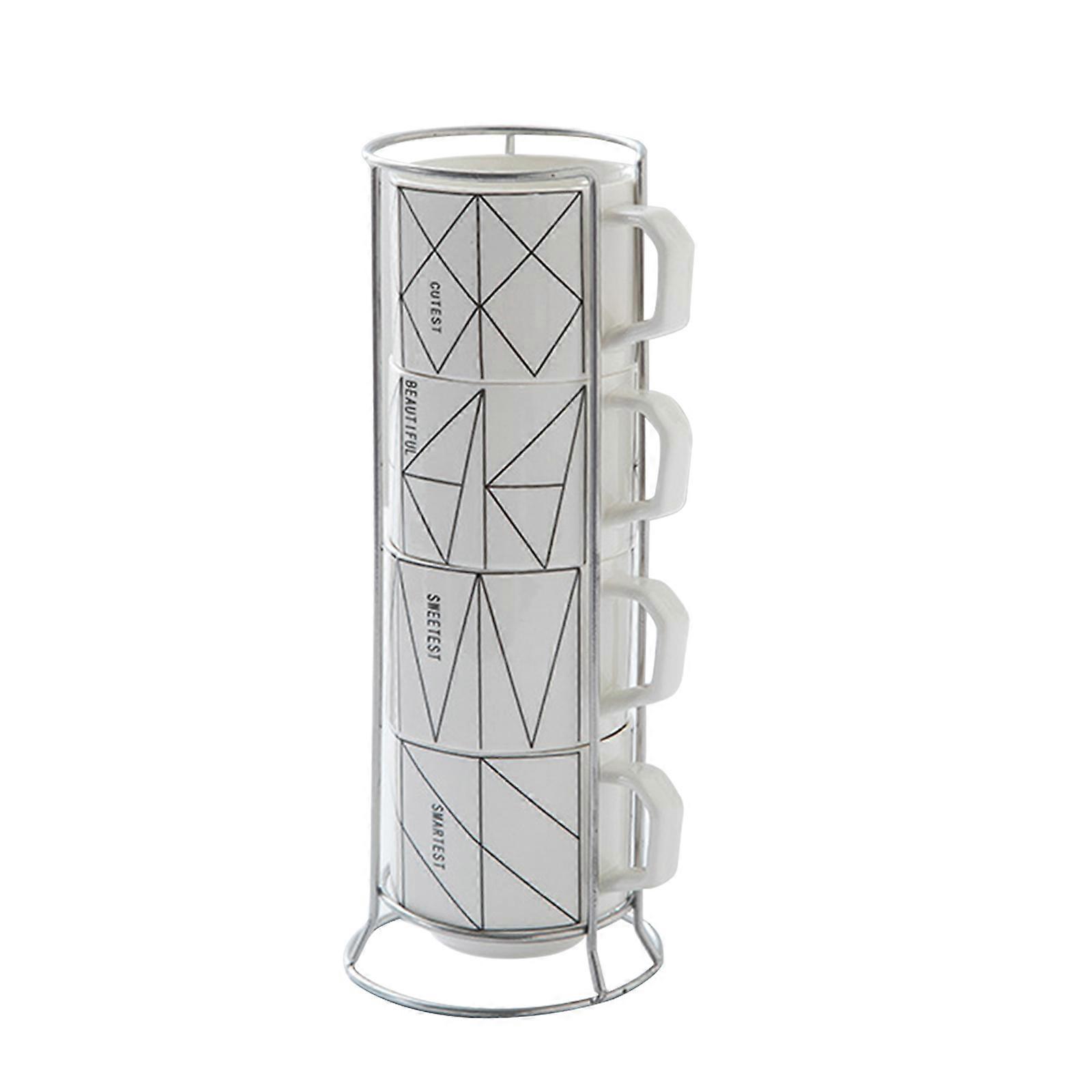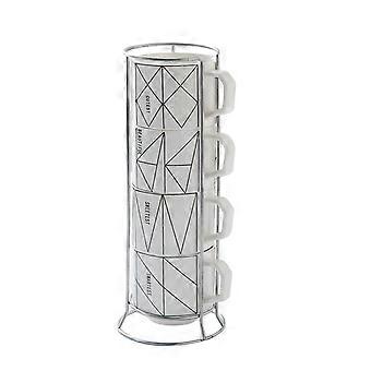 Creative Geometry Coffee Mugs with Metal Stand. Colorful Design. Versatile and Easy to Store. Perfect for Various Drinks.