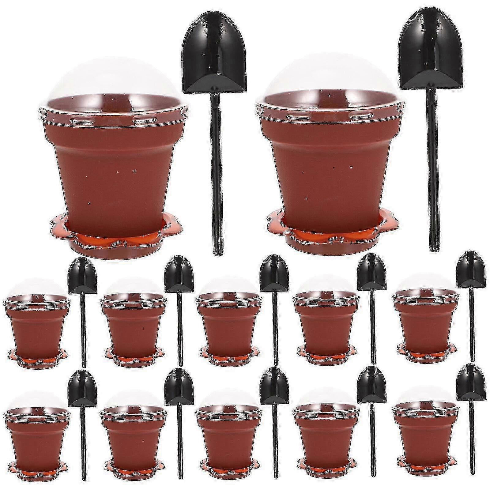 Plastic Flowerpot Cake Cups with Lid - 30pcs Dessert Container for Ice Cream Mousse - Includes Shovel Scoop and Bottom Tray