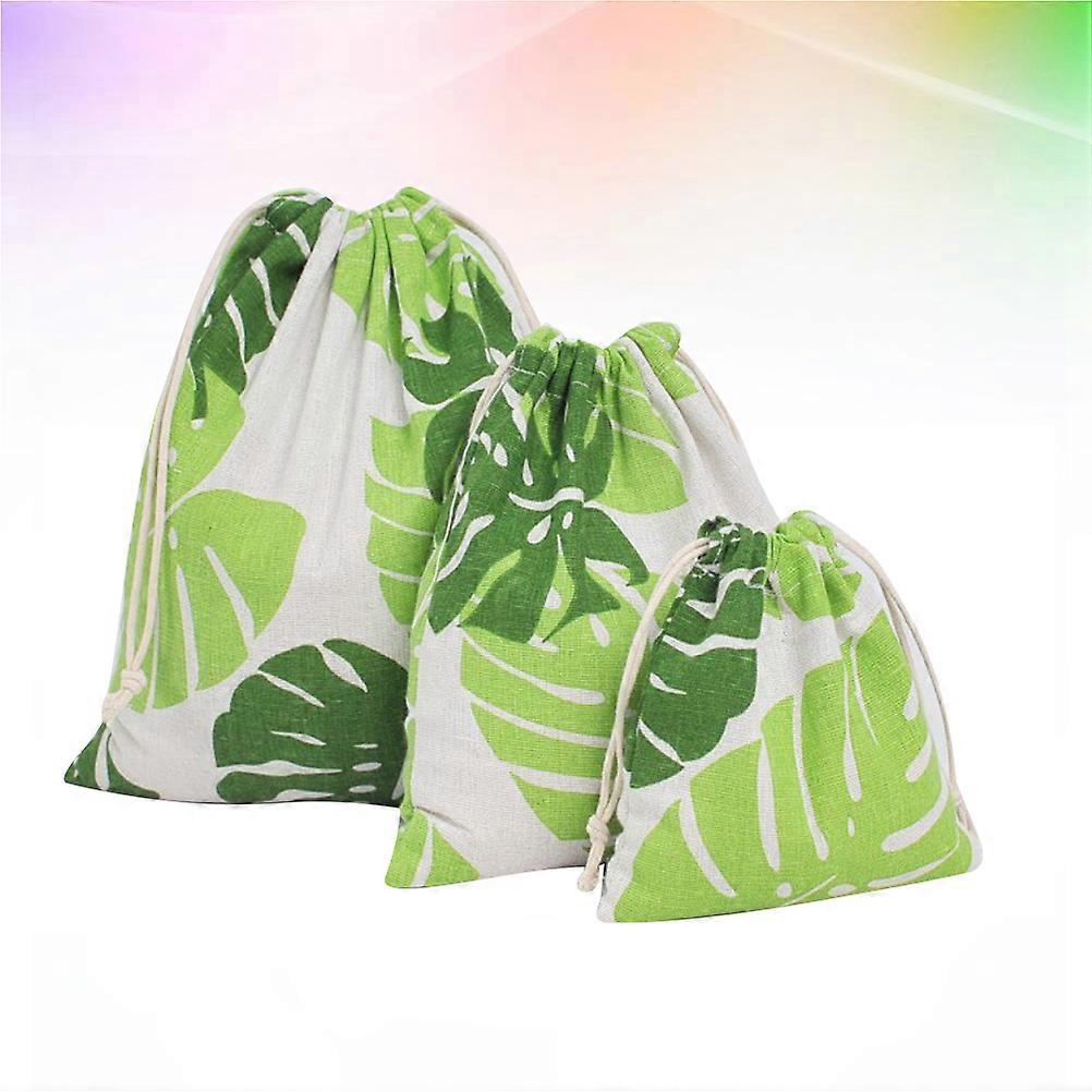 Storage Bags Bulk Cotton Fabric Monstera Printing Sundries Large Size 25x32cm Storage 3Pcs