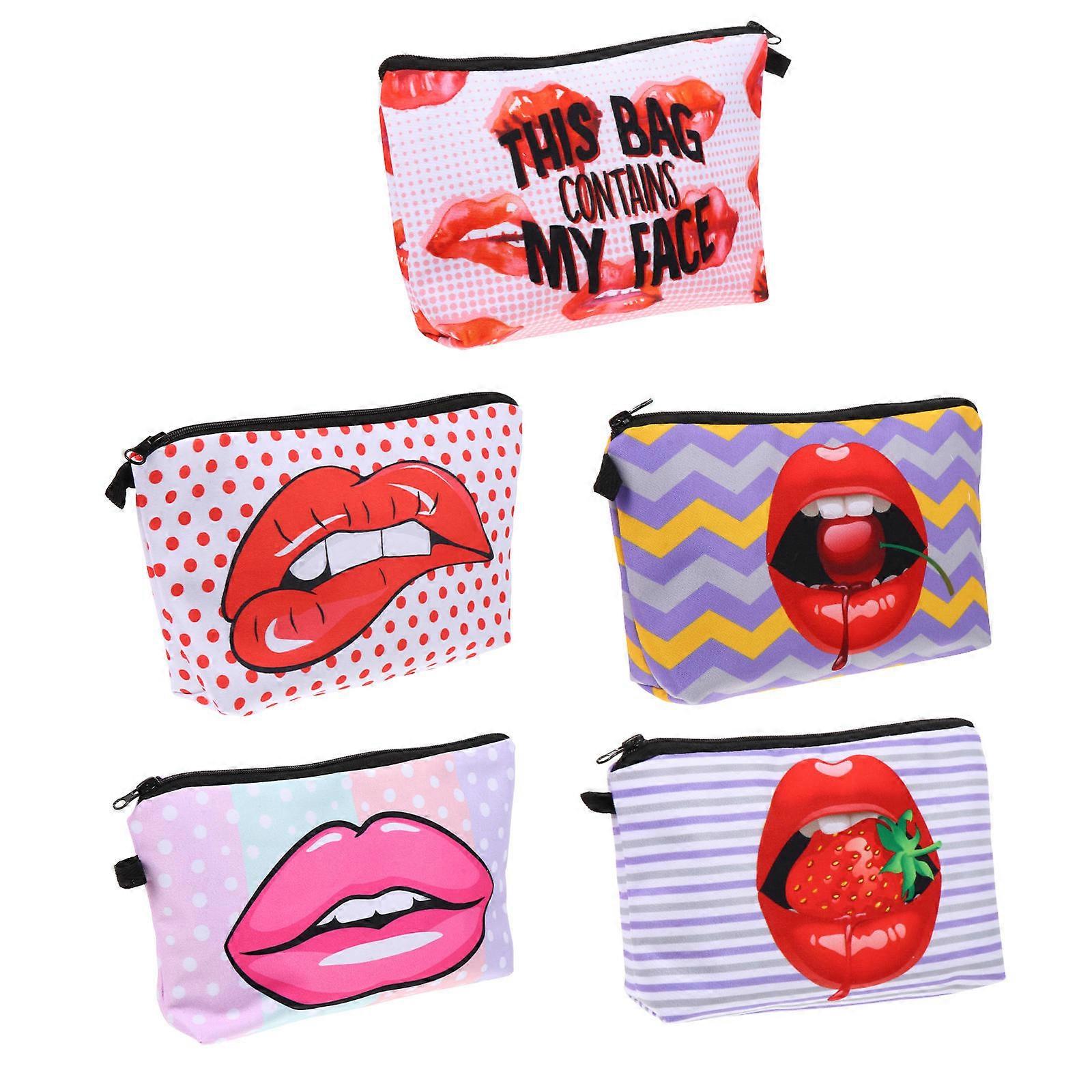 Women Makeup Bags for Storage Use 5Pcs Lip Printing Cosmetic Pouch