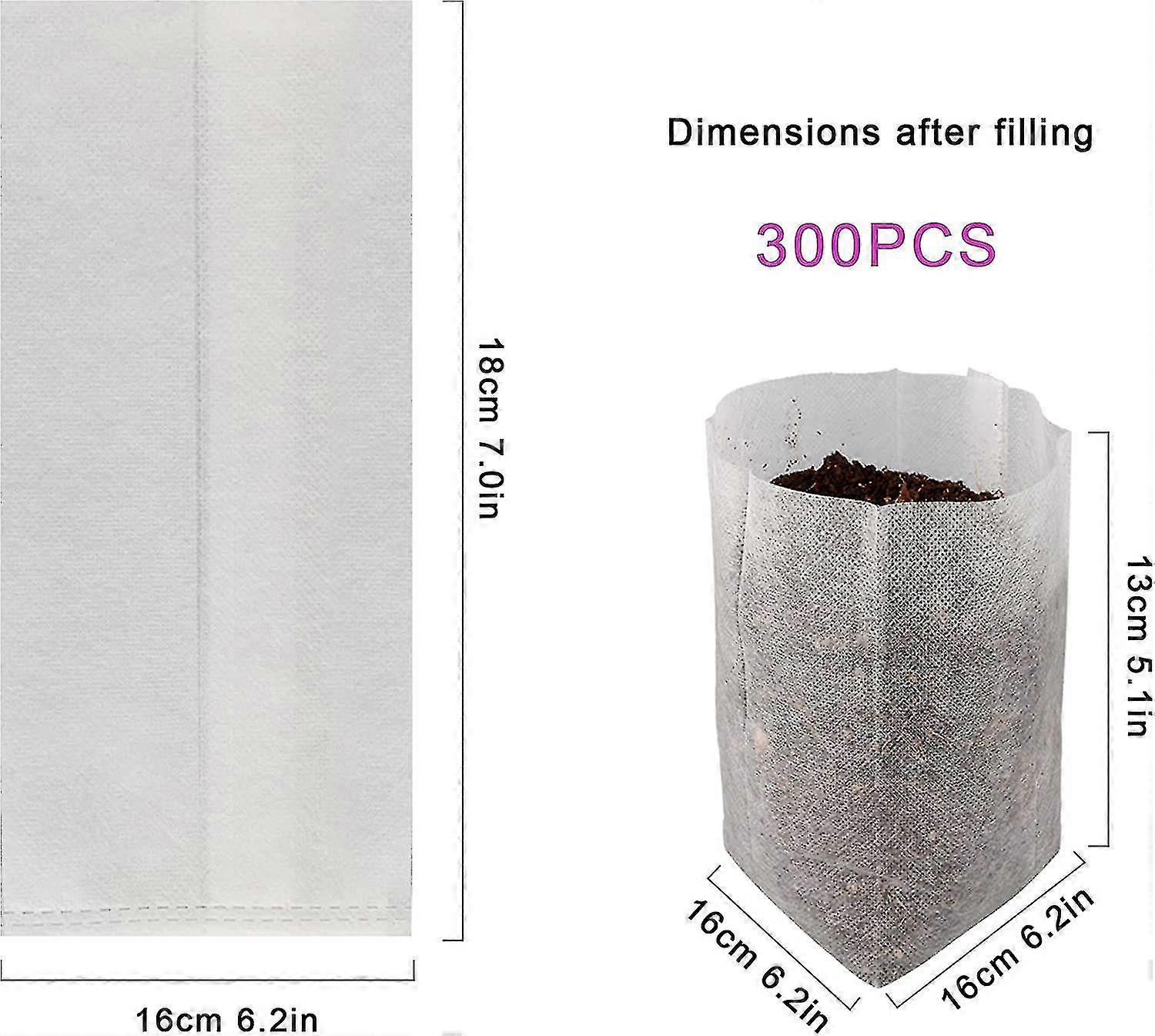 Environmental protection and practical: The seedling bag is made of non-woven fabric, lightweight and easy to carry. The bottom is double stitched, which is strong and durable. The biodegradable material not only makes it more environmentally friendly, but also reduces recycling costs.Good growing environment: The seedling bag has excellent water permeability and air permeability, so that the roots of the plant can pass through the plant bag, water and nutrients can enter freely, providing a good growth environment for the plants you want.Easy to use: the seedling bags can replace traditional plastic and metal flower pots. They don't even need to be removed when transplanting. They are directly buried in the ground and mixed with the soil naturally, which saves labor costs. Due to the "air shear" effect, seedlings grow faster after transplanting, which improves the survival rate of seedlings and ensures good plant growth.Wide Application: Suitable for plants water-loving, moisture-loving and water-absorbent, such as fruits, vegetables, flowers and nurseries. It can also be used in fruit protection bags to protect against pests.Package includes: 300 bags of seedlings, 16 x 18 cm (tile size), white