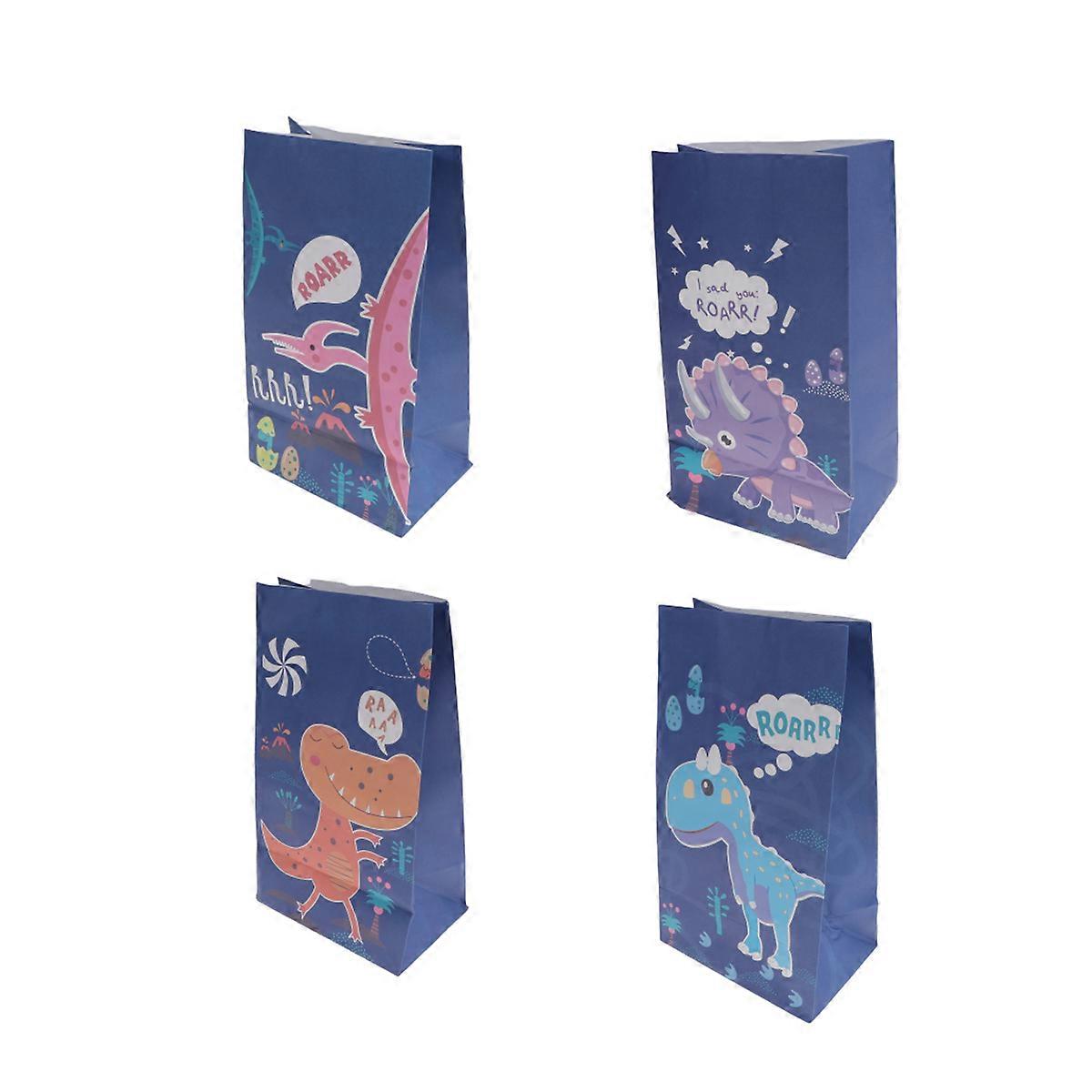Dinosaur Paper Bags Kids Party Bags Party Favor Packaging Blue Recycled Material 12Pcs
