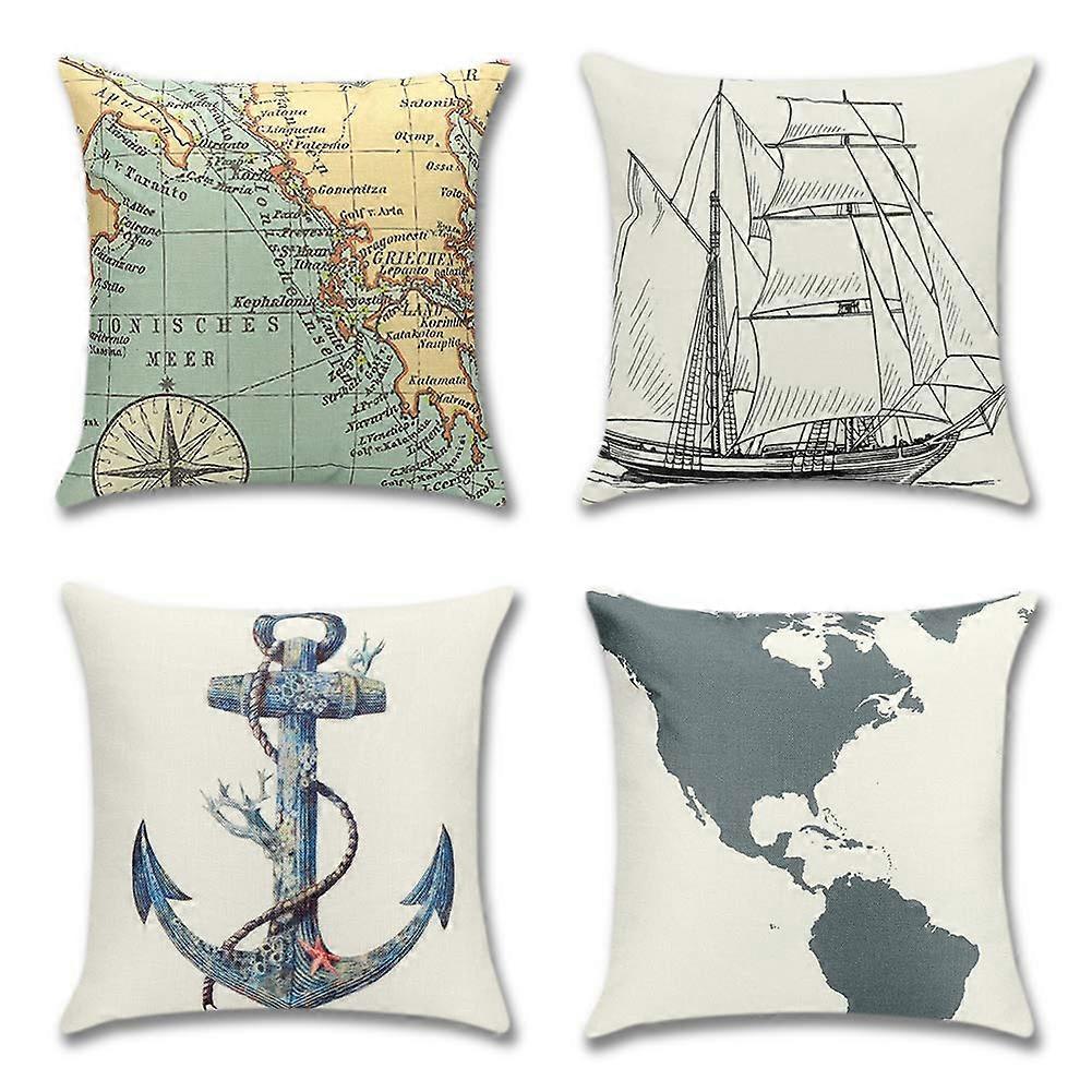 Nautical Age Pattern Home Decor Pillowcases - Set of 4, High-Quality Cotton, Coastal Themed, Perfect for Beach House and Bedroom Decoration.