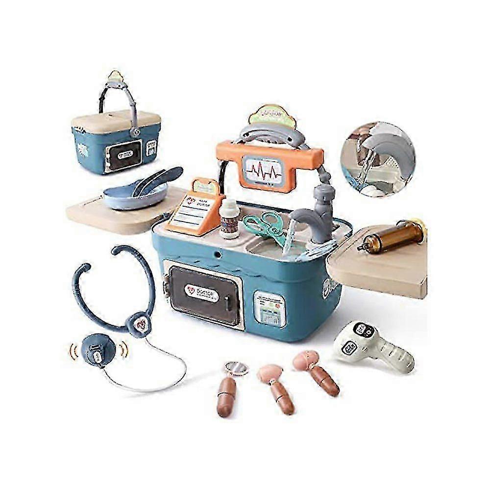 Being a doctor is one of the most prestigious professions. Cultivate the use of various medical kits and calm them down. The fears. of the doctor when you role-play with the doctor. Realistic Sound Effect and Portable Body: The stethoscope produces an authentic real-life heartbeat and experiences more entertaining sounds in life. Special design for children aged 3-6 years old and suitable for children's ears. Easy to use with one handle for travel or anywhere. Corresponding latches keep the doctor's case securely locked, it's easy as pie to use. Water circulation design and storage: Put water in the sink, then manually press the faucet to drain the water. The most important point is that the circulatory system produces water continuously. This will help your child wash their hands after playing. Parts can be stored in the sturdy doctor's box, reducing adult chores and keeping your home clean and tidy. Child-safe material: Designed with smooth and rounded edges, with no sharp points or corners, which is safe for children to play with . Made of durable premium ABS plastic. Don't worry that kids will hurt themselves while playing as this is easy for the kids to clean. Extremely Hygienic. Perfect Doctor Playset Gift: The doctor playset for kids makes a premium gift for any occasion, pretend play, pretend play, school classroom, Christmas gift, birthday gift, Christmas present or Children's Day. Create hours of fun with medical toys. Material: Plastic