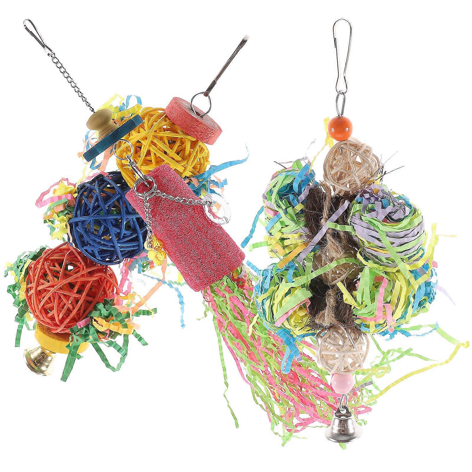 Bird Chew Toys 3Pcs Parrot Toy Designed for Playtime and Daily Use Made of Durable Wood and Wrinkled Paper to Enhance Bird Engagement