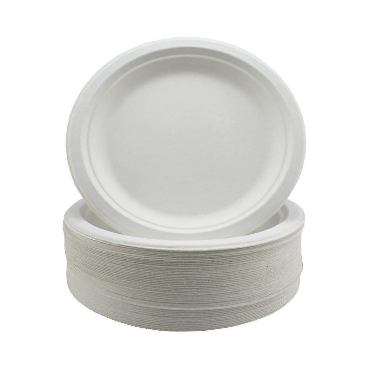 Super Rigid Paper Plates - Extra Strength White Disposable Bagasse Sugarcane Plates - Eco-friendly, Biodegradable And Compostable - 9 Inch - 50 Pack -