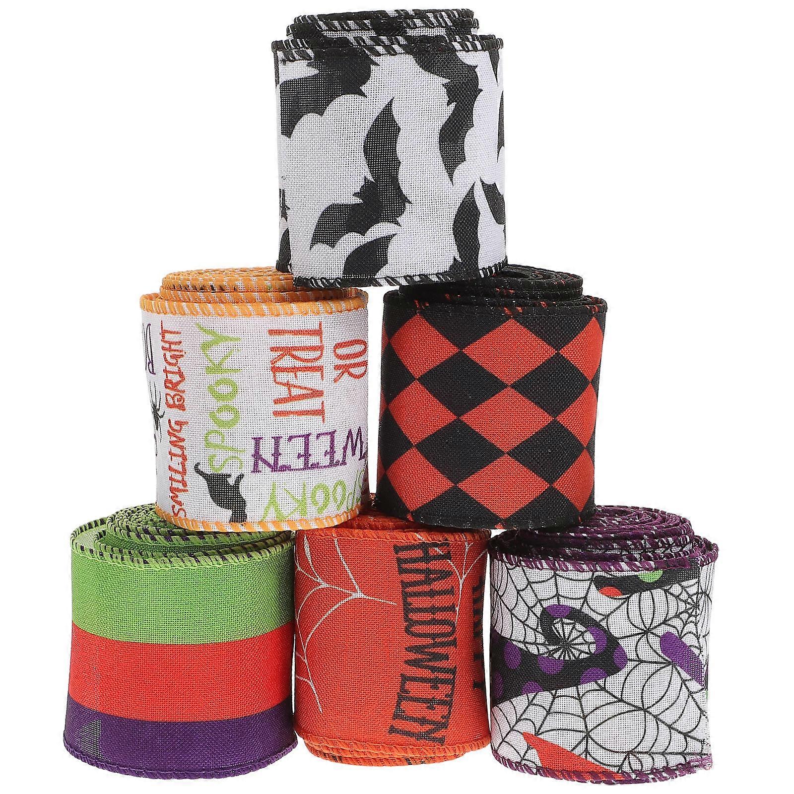 Assorted Color 6 Rolls Halloween Gift Wrapping Ribbons For Crafts Decoration Festival Season