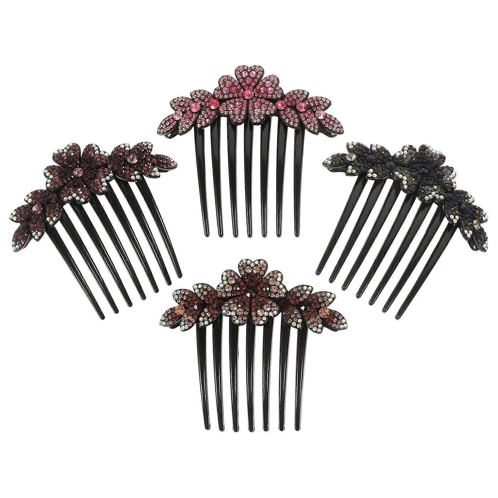 Sparkly Glitter Hair Combs Prom Headpiece Rhinestone Accessories Flower Pink Gradient 4Pcs