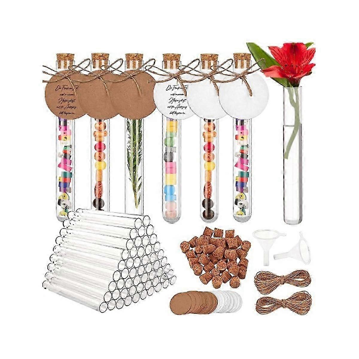 60 Pcs Test Tube With Cork, 16X150mm(20Ml), Plastic Test Tubes With Kraft Paper Tag & Rope Funnel