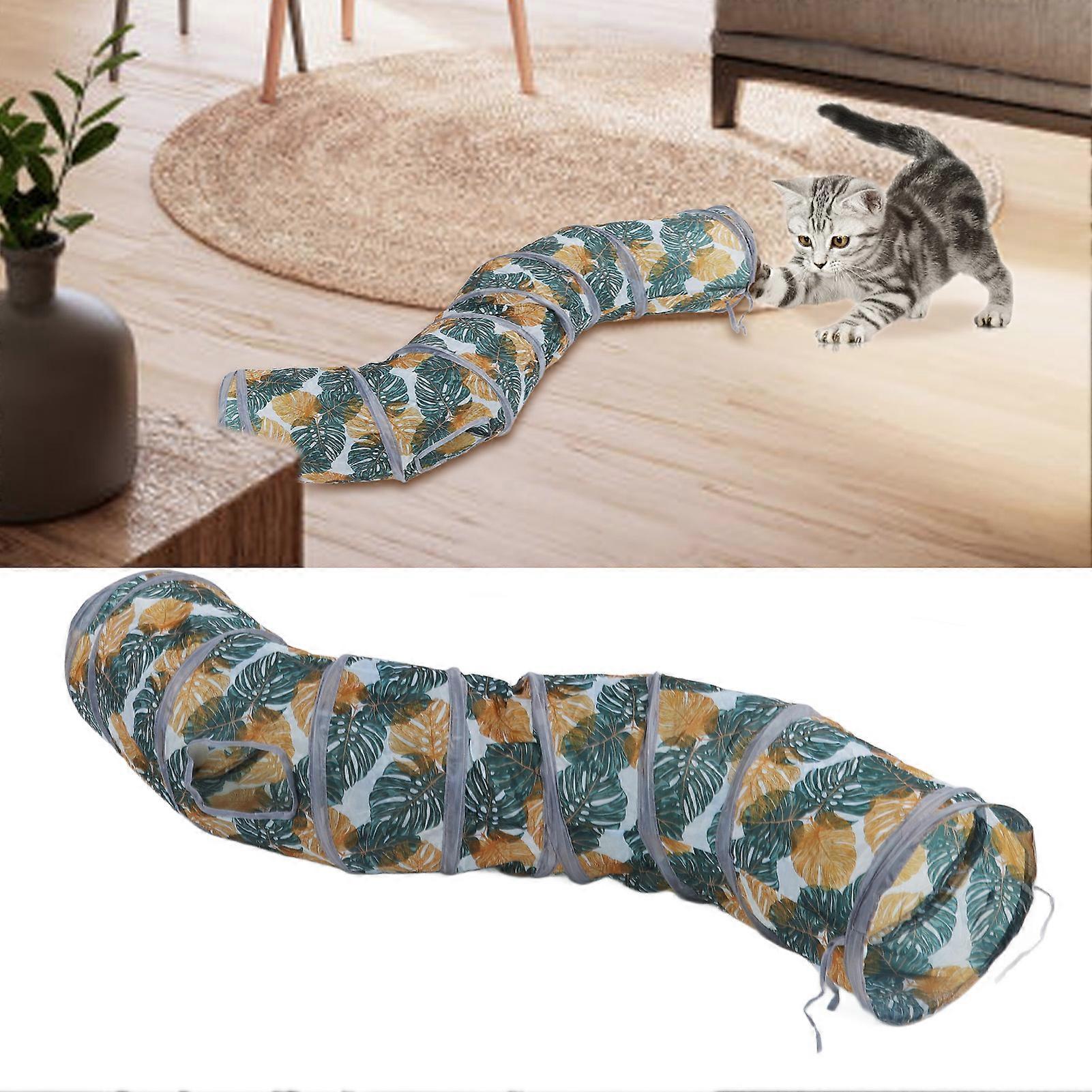 Cat S Tunnel Tube Wild Leaf Print Thicken Collapsible Portable Little Pet Tunnel for Small Pets