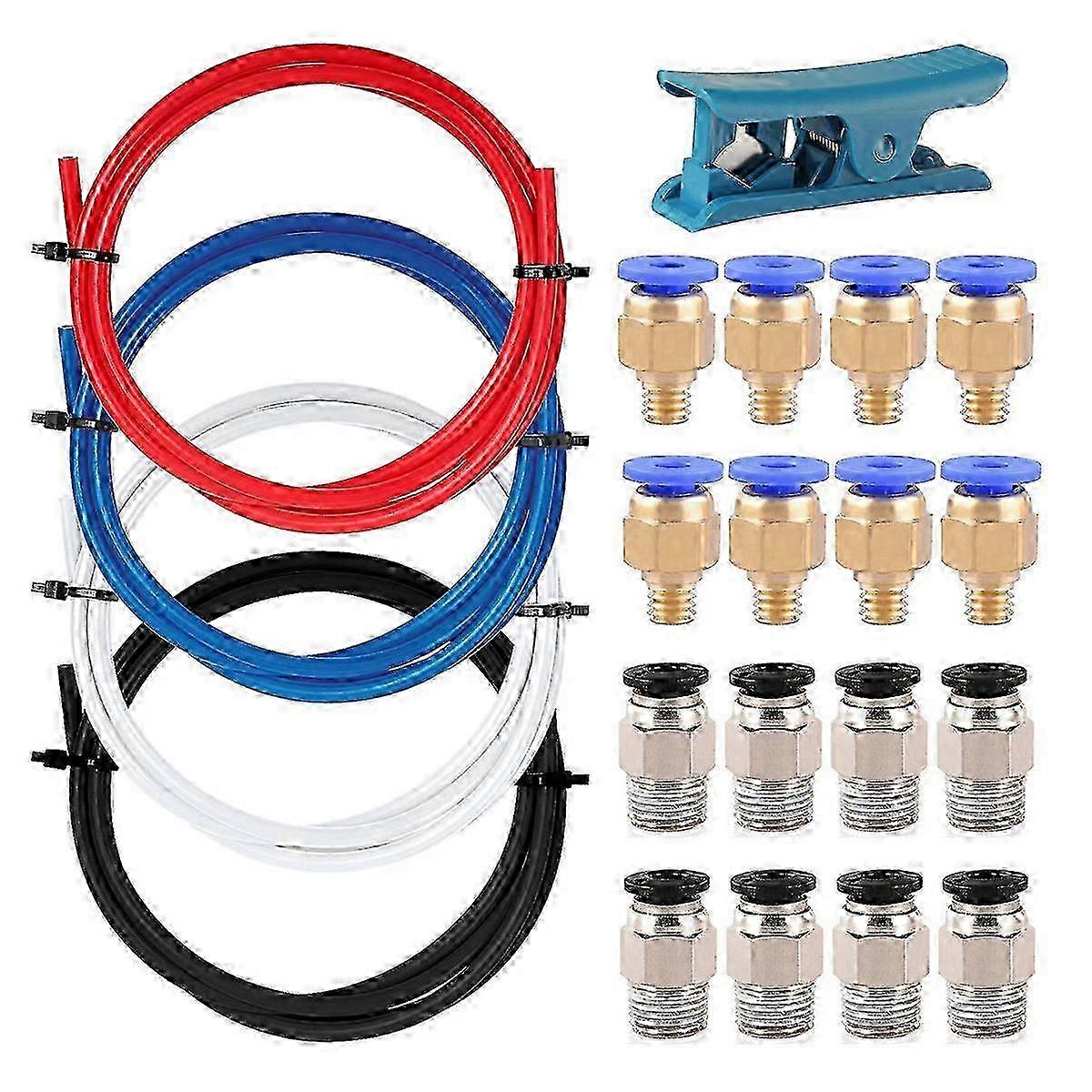 PTFE Bowden Tube for 4mm Diameter Equipped with PC4-M6 and PC4-M10 Air Fittings Designed for 1.75mm Filament 3D Printer with Tube Cutter Included