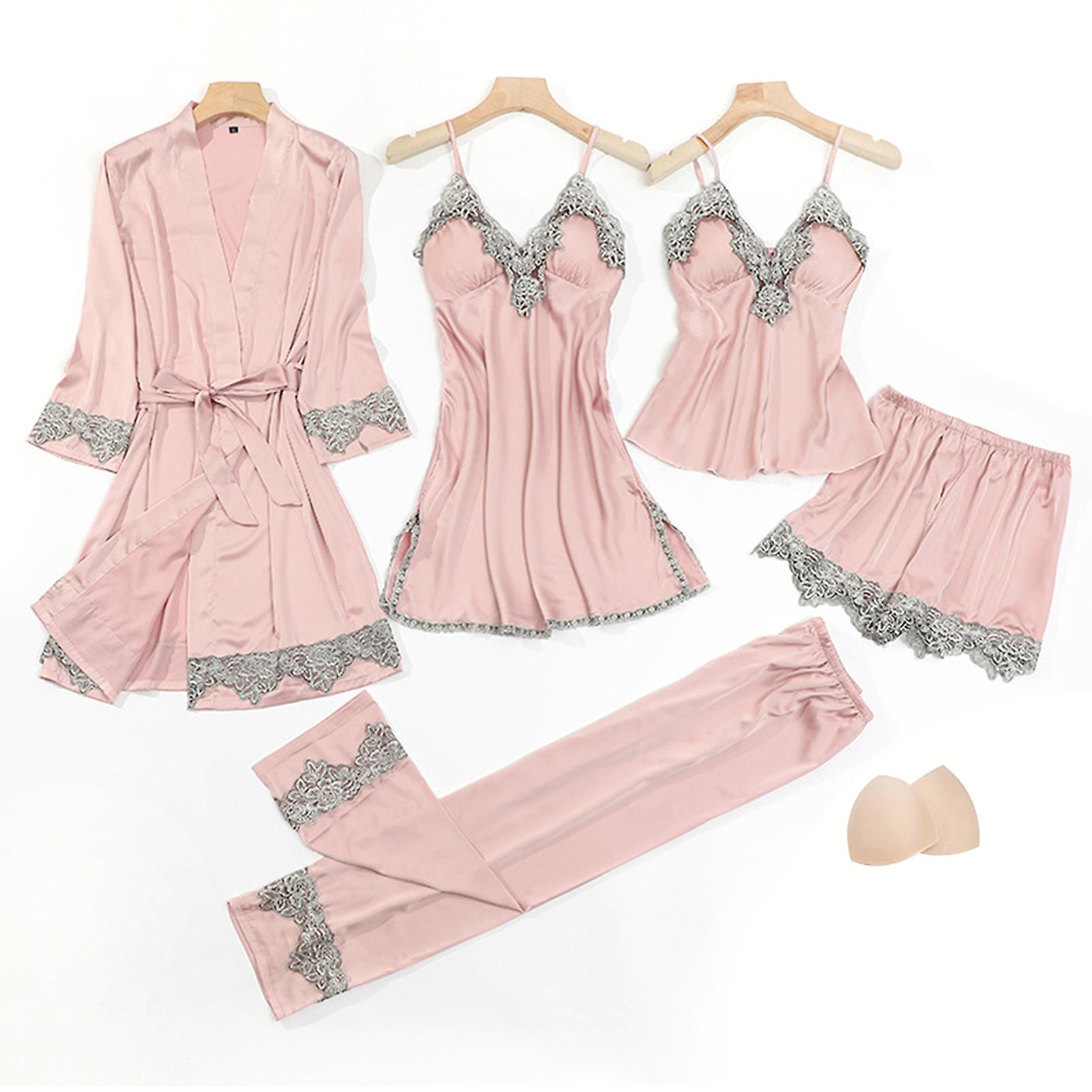 Female Pajamas Set 5pcs Sleepwear Lace Comfortable Sleepwear Loungewear