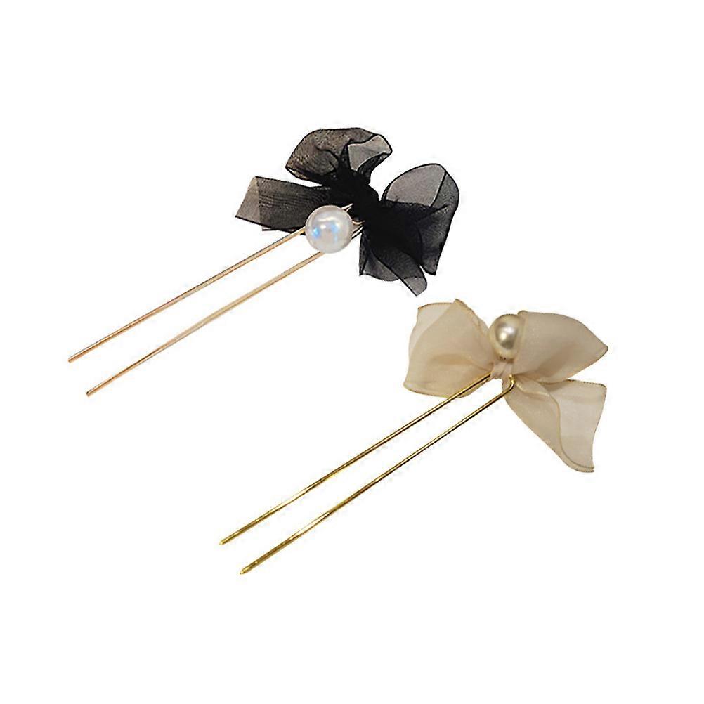 Stylish U Shape Hairpins Lace Bow Hair Accessories For Women In Assorted Color Perfect For Special Occasions 2Pcs