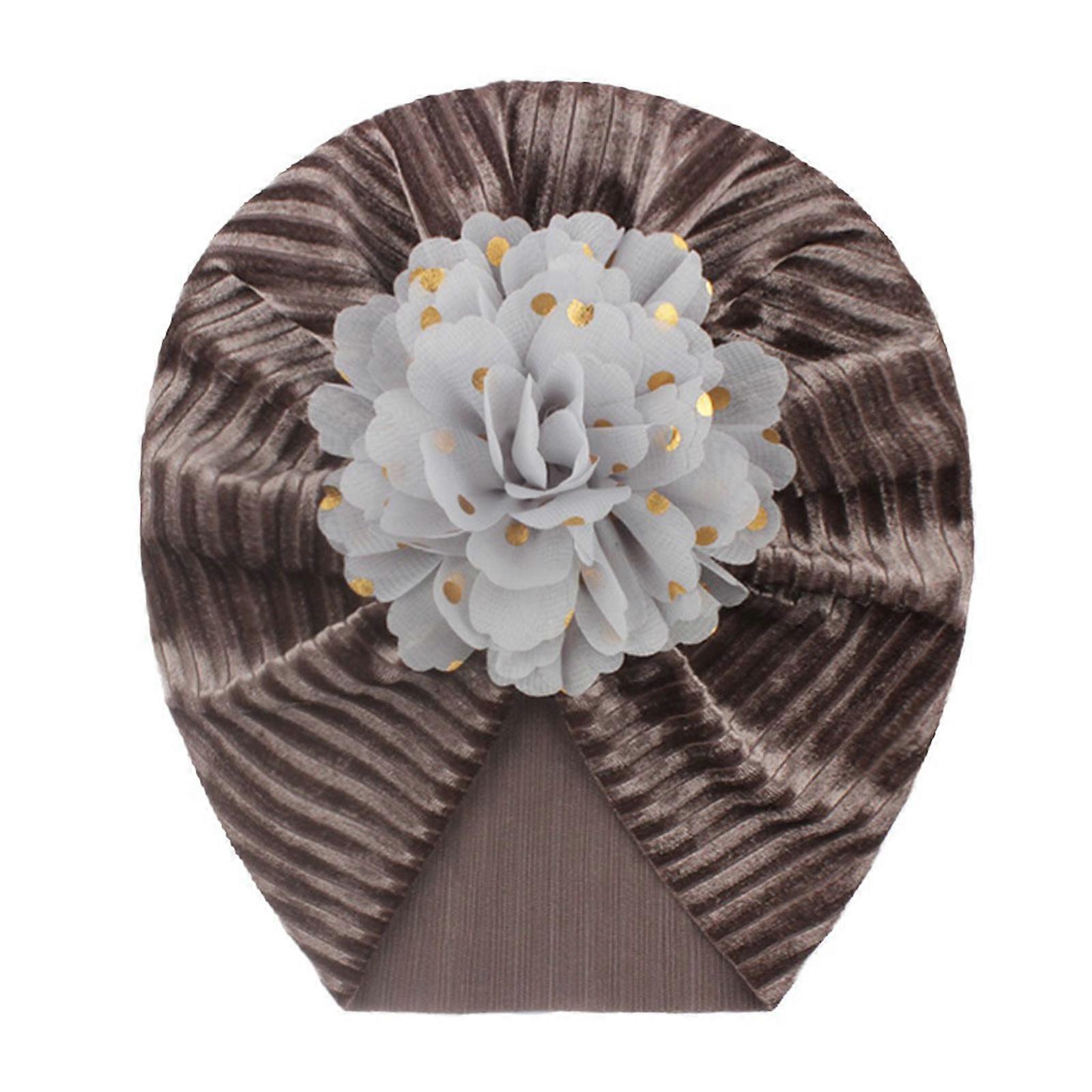 Stylish Large Flower Hair Knot Hat Wide Headwraps Beanie Cap Colorful Baby Hat Comfortable Baby Hat for Baby Girls Gift brown gray