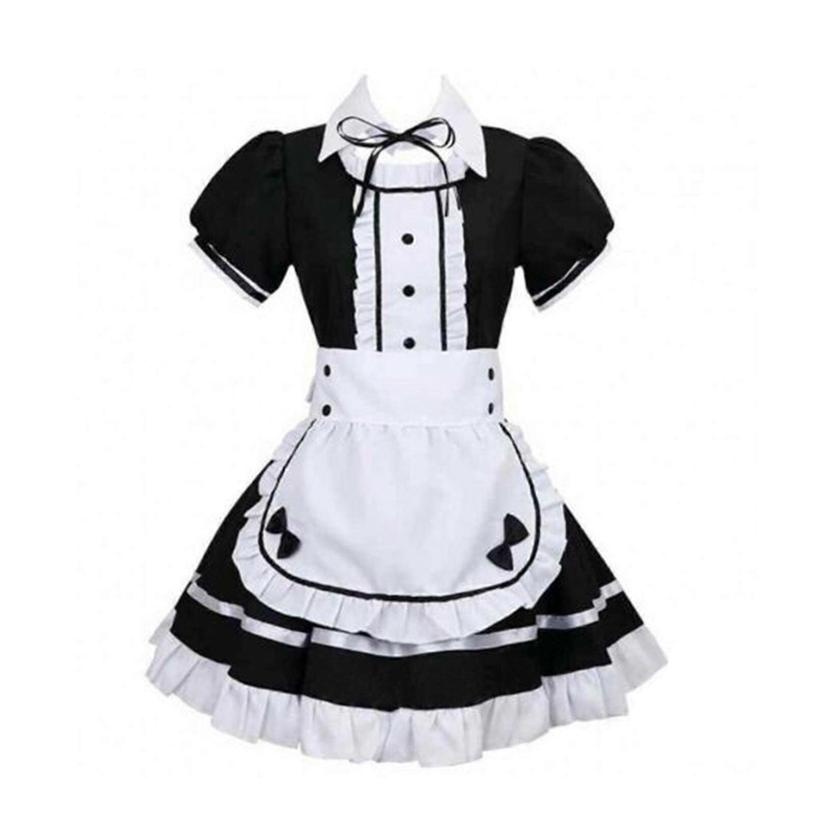Anime French Maid Cosplay Costume for Halloween Party - Maid Outfit with Apron, Lolita Fancy Dress