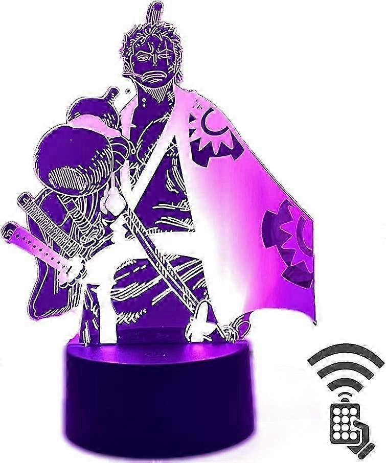 Anime Roronoa Zoro Cartoon 3D Illusion Night Light,LED Table Desk Lamps,Home Decor Touch 7 ColorsRemote Control 16 Colors USBBattery Children Be