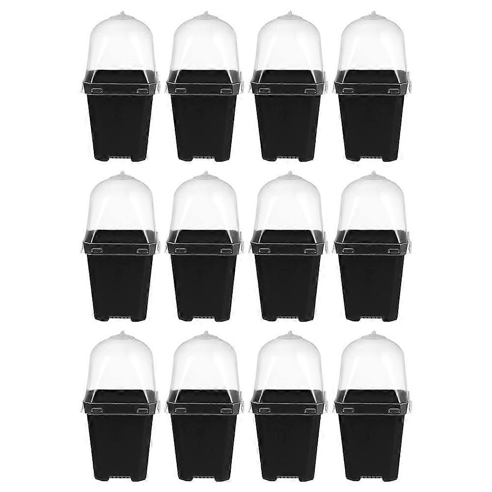 Nursery Pots with Humidity Domes Transition Pots Gardening Square 5.50X2.75X2.75in Drainage 12 Sets