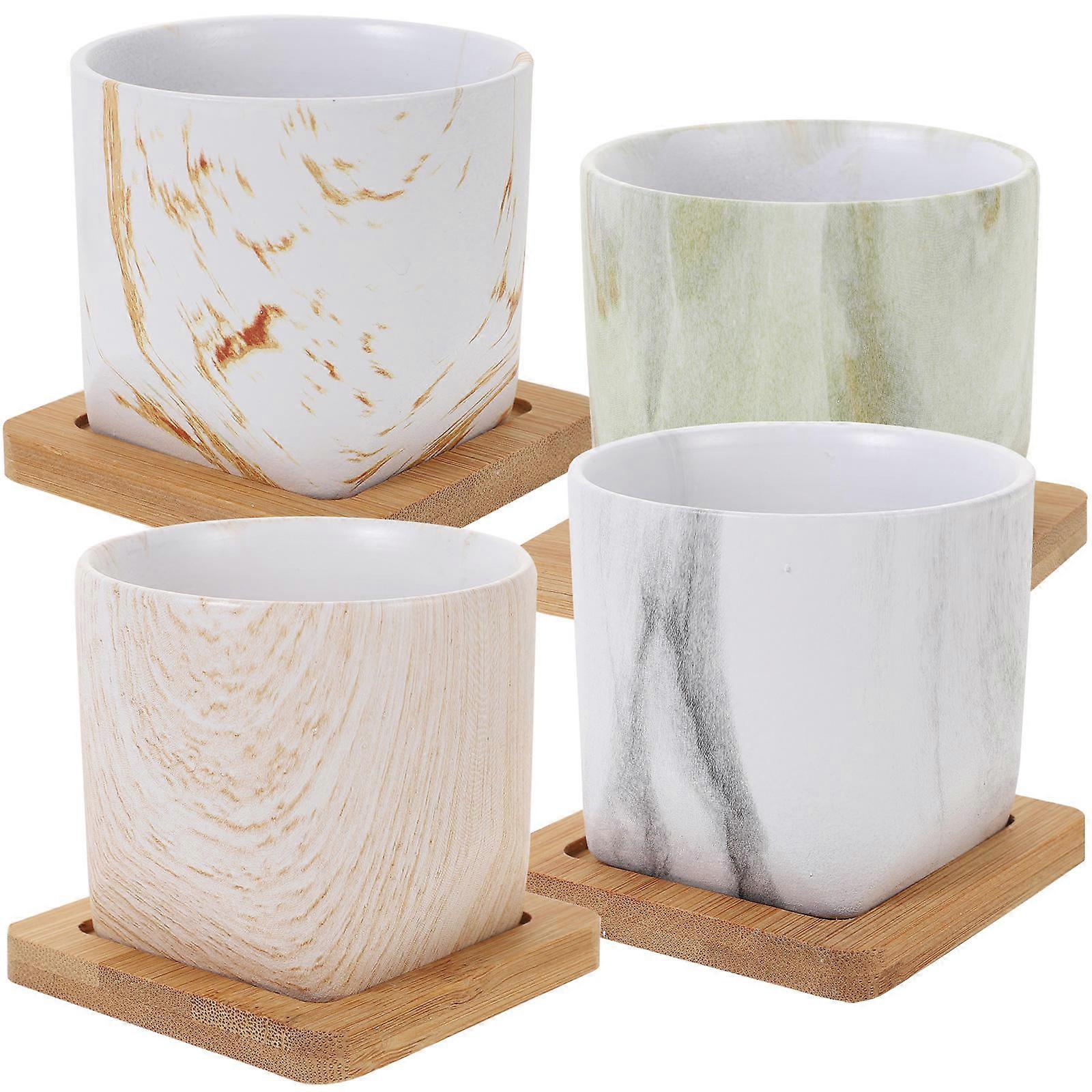 Ceramic Flower Pots with Drainage 4 Sets Multi Functional Planters for Succulents & Plants, Durable Marble Design for Indoor & Outdoor Garden