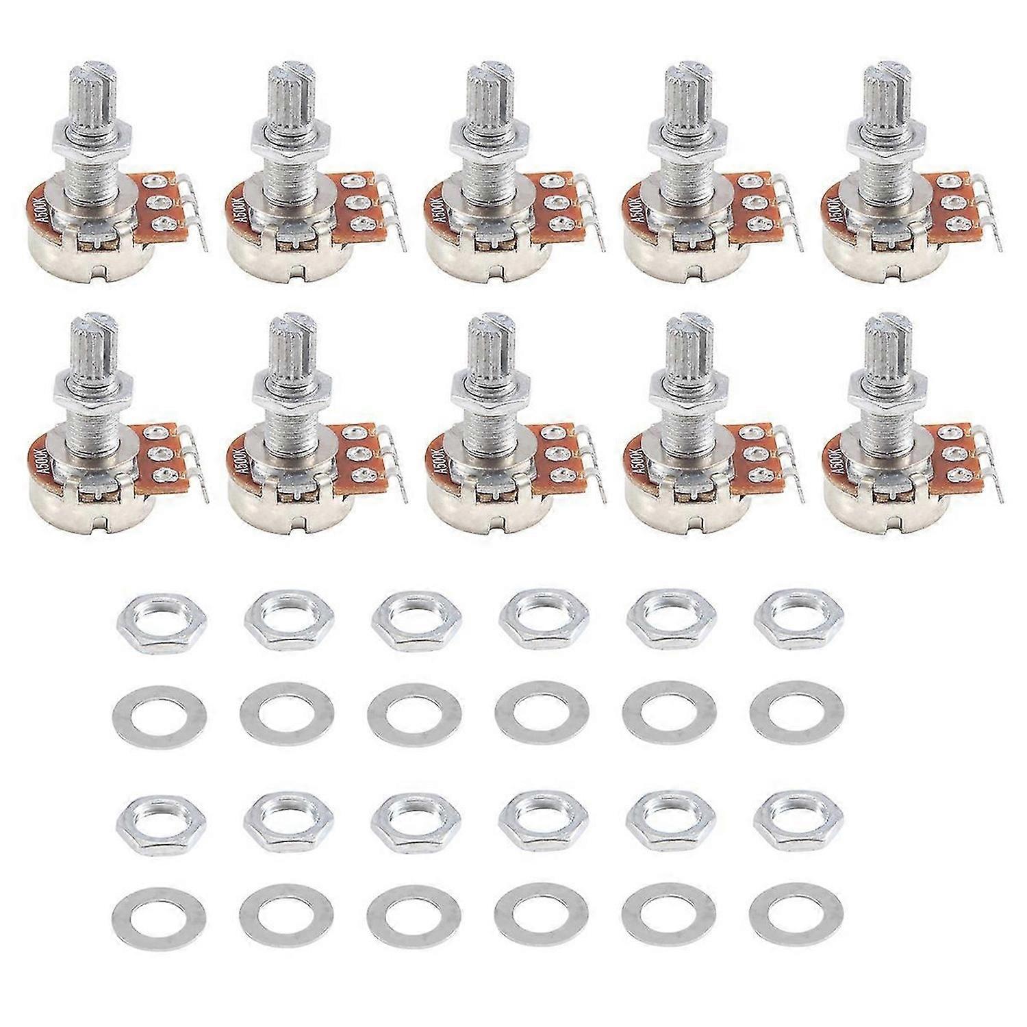 100% New Small Long Kind Full Resistance: 500k ohm Audio Taper Usually used on Stratocaster or Telcastercater wire custom<br><br>Shaft Length: 18mm Shaft Diameter: 6mm Whole Length: 24mm Base Diameter: 16mm Long Knurled and split shaft Color: silver material: metal<br><br>Package Contents: 10 pcs Potentiometers 10 pcs screws 10 pcs shims<br><br>Only the above package content, other products are not included. Note: Light shooting and different displays may cause the color of the item in the picture a little different from the real thing. The measurement allowed error is +/- 1-3cm.